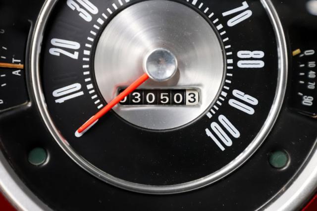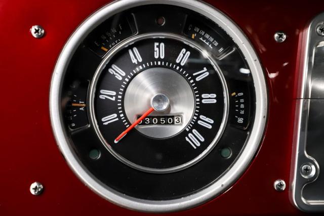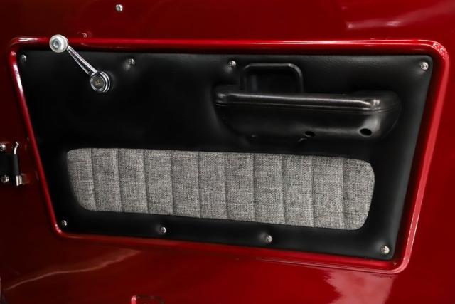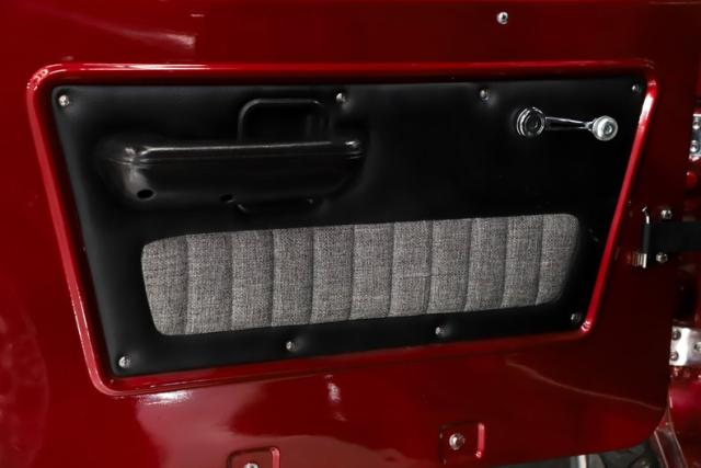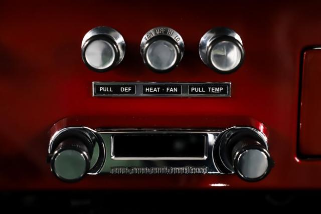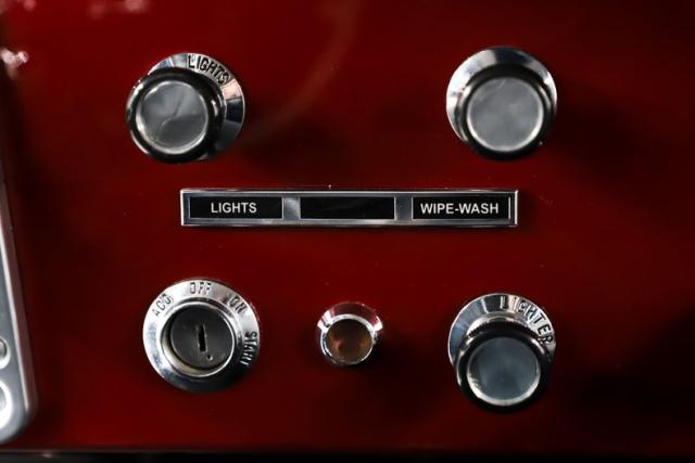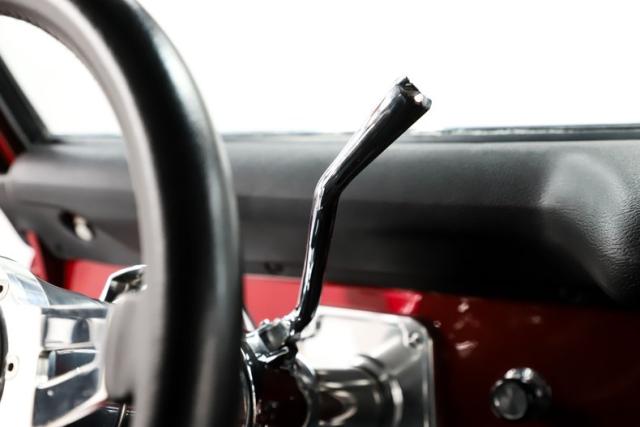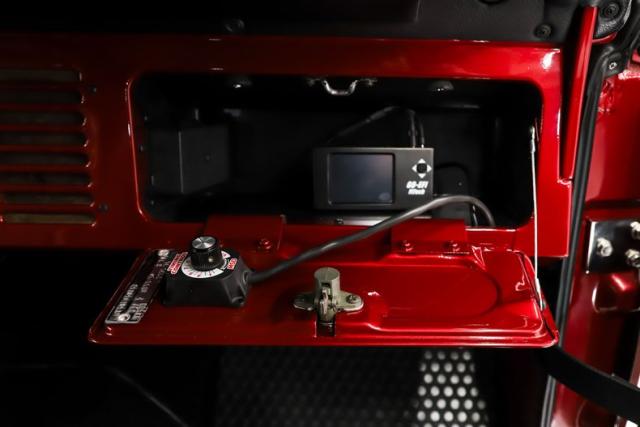 INTERIOR: It is just as fresh and beautiful inside! Everything looks new from the carpet to the headliner, even the wiring harness is new. The metal is painted slick like the exterior. It has a complete upholstery package including side panels, seat cushions and seat upholstery. There are seatbelts front and back. The dash pad was replaced, new knobs, instrument cluster and a digital retro stereo. Inside the glovebox is the EFI control screen and timing controls. I love the leather wrapped cushion grip wheel on the polished tilt column, actually I love the whole interior!