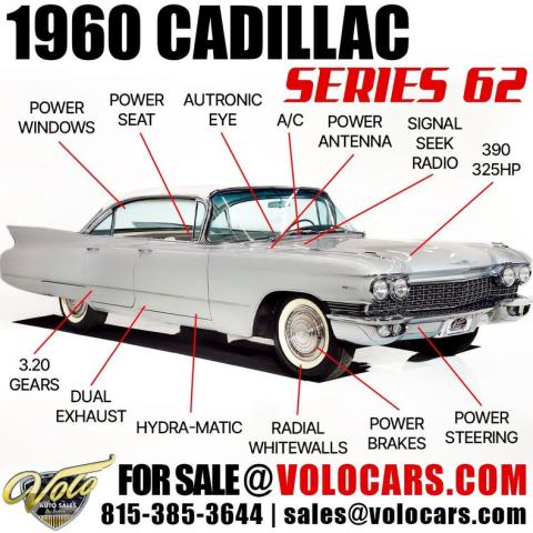 INTRODUCTION: Condition matters-especially on a 1960 Cadillac! Restoring one to this level can easily consume a couple hundred thousand dollars. Don\'t worry, this one is in exceptional condition. This one is featuring a rust-free body, sparkling chrome, and a mint dash pad. It\'s not just beautiful-it\'s highly functional and ready to be enjoyed. Claimed to be a two owner car, we have receipts from its professional restoration in the early 1990s when it had 52,000 miles. Now it has just 62,800 miles, it has been obviously very well cared for since, stored in climate control.