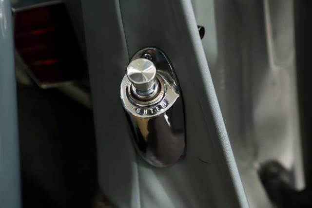 TRUNK COMPARTMENT: It is clean and complete. Under the deck lid is nicely painted, as are the jambs, and the trunk light works. The weatherstrip has been replaced, inside it features the full liner kit, including the cover over the spare, giving the compartment a tidy, well-finished appearance.