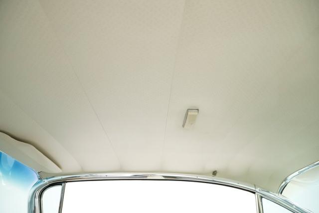 EXTERIOR: This masterpiece of automotive design is known for its long sweeping body lines, a massive chrome presence and restrained fins giving it a sophisticated look. I am very impressed with this body, it\'s as long as a football field and still straight as an arrow! The panels fit precisely, the doors close like new. I don\'t see any signs of rust or damage. Repainted its original Platinum Gray metallic color and it\'s laid out evenly and polished to a glass finish. It\'s offset nicely with a glossy white roof. The chrome was replated, the stainless was polished, the bullets in the grille and the tail panel were reanodized. The original glass is clear, weatherstrips were replaced. It\'s rolling proud on a set of Coker radial whitewalls with a mint set of hubcaps.