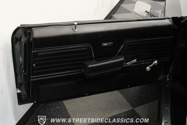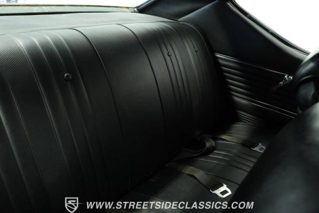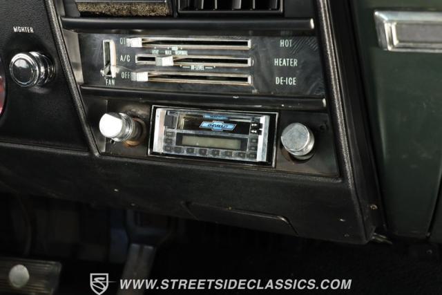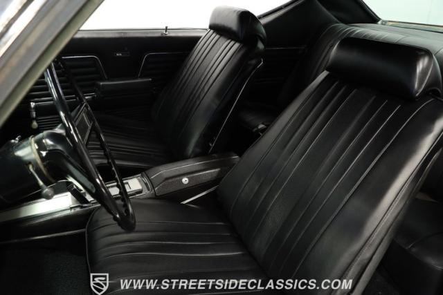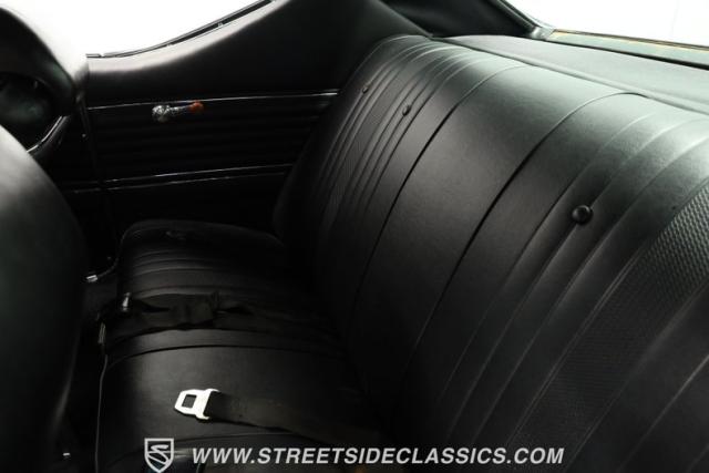 Inside, we find a nicely redone black vinyl interior. A center console separates dual bucket seats, while a two-spoke wheel with thumb horn controls proudly displays the iconic SS logo. A three-pod gauge cluster features a large 120 mph speedometer on one side, four auxiliary gauges in a clever multi-readout setup on the other, and an old-school analog clock in the center. Though will need repair to blow cold, air conditioning highlights the easy-to-use sliding HVAC controls, while a staple-style shifter sits in perfect reach, ready to set this Super Sport blasting off whenever you are.