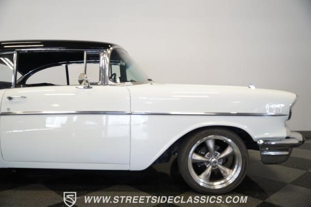On the Mount Rushmore of collectible classic cars, one car that would be almost unanimously nominated would be the iconic \'57 Chevy. Few cars have ever captured the minds and hearts of so many, and with that adoration, we have come to enjoy a plethora of variations when it comes to restorations of this classic machine. One such version is this beautiful 1957 Chevrolet Bel Air LS3 Restomod. This two-door hardtop has been fully repainted in a brilliant white, complemented by a contrasting black top, and features a set of staggered and polished REV five-spoke wheels shod in low-profile Ironman tires, giving it a stunning look from any angle.