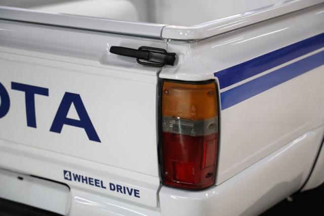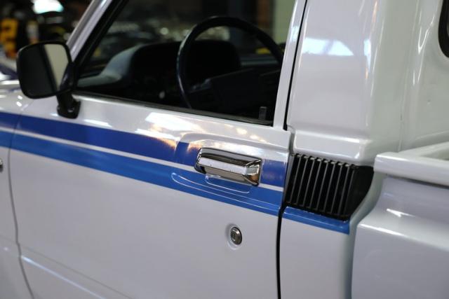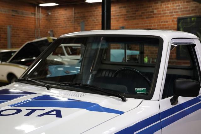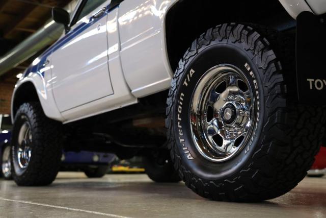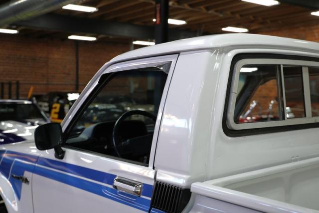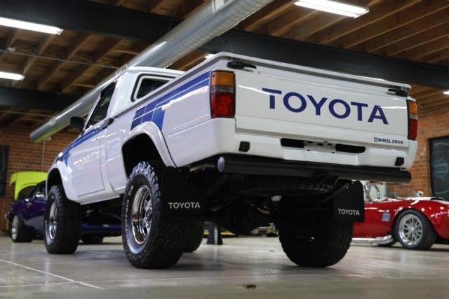 Check out this killer 1982 Toyota Deluxe Pickup 44-a true classic that\'s built to work, wheel, and turn heads. This truck has had just three previous owners and is finished in a glossy white exterior accented by blue decal stripes and a clean blue interior. It sits right on 31\" BFGoodrich tires, chrome wheels, and steel bumpers, giving it that unmistakable old-school Toyota stance.