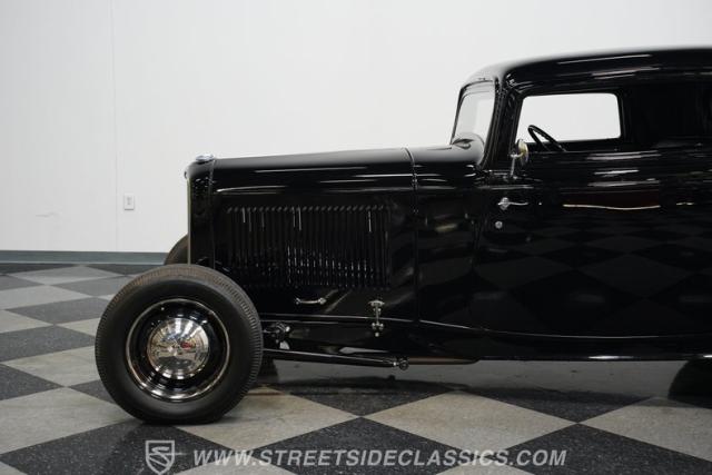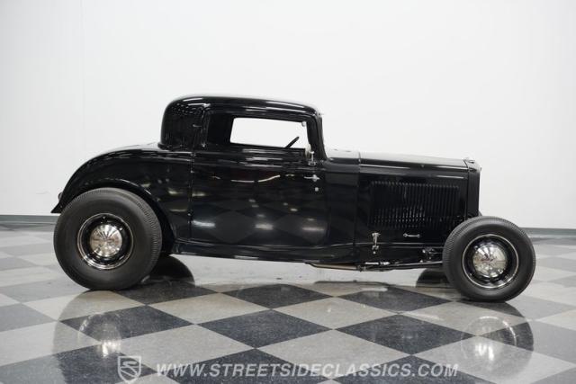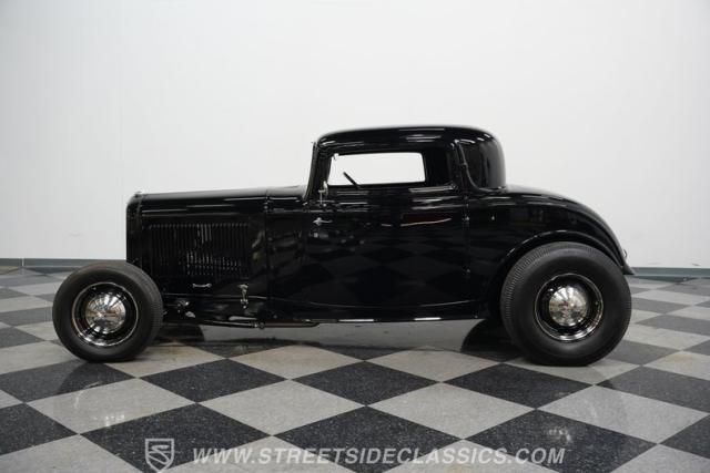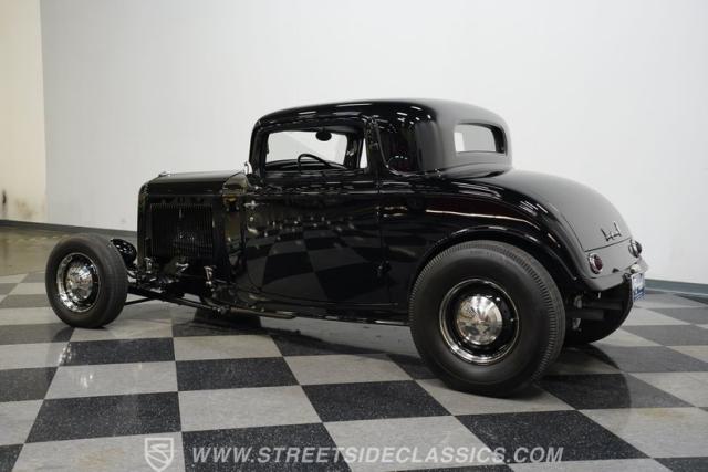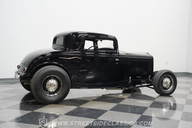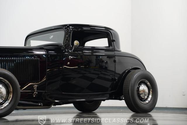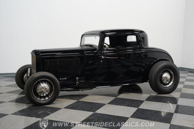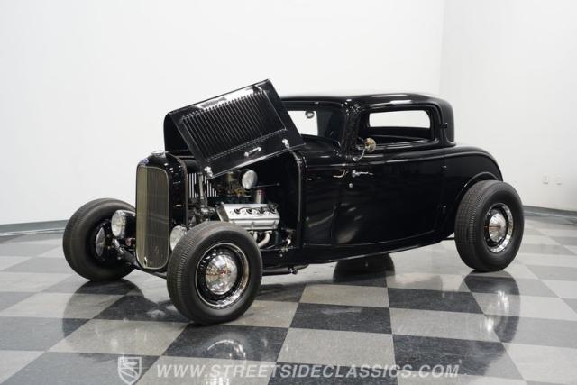 Step back in time and feel the rush of classic American muscle with this stunning 1932 Ford 3-Window Coupe. More than just a car, this coupe represents an era of bold design and raw power, a rolling piece of history that turns heads wherever it goes. Its jet black fiberglass Wescott chopped body radiates a sleek, timeless charm, complemented by suicide doors and a mirror-like finish that speaks to its meticulous restoration. Whether you\'re a seasoned collector or a passionate enthusiast, this 1932 Ford 3-Window Coupe offers a unique blend of nostalgia and performance that\'s hard to resist.