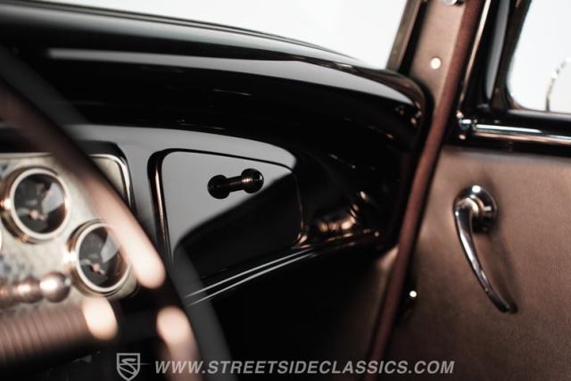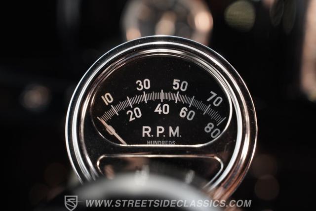 Inside, the cabin is both stylish and functional, featuring an all-new black vinyl interior that offers a clean, classic look. The original style 1932 steering wheel is paired with a column-mounted tachometer and a center gauge cluster, providing the driver with essential information at a glance. Comfort is enhanced by power windows with manual locks, while the single bench seat offers plenty of room for a relaxed drive. Safety locks and suicide doors add to the car\'s distinctive character and charm.