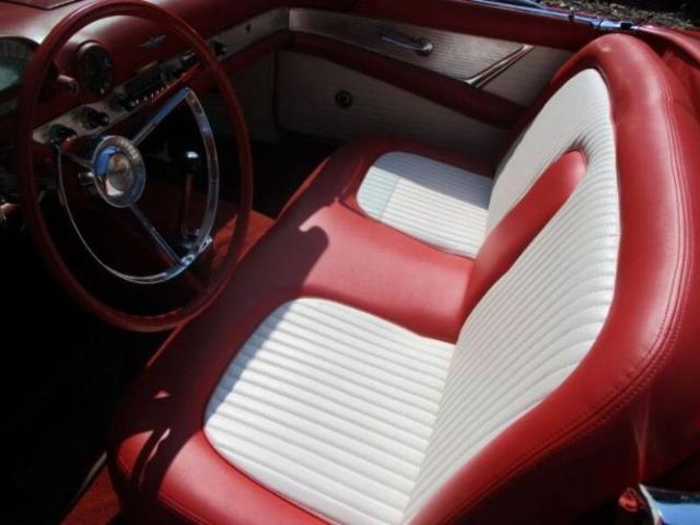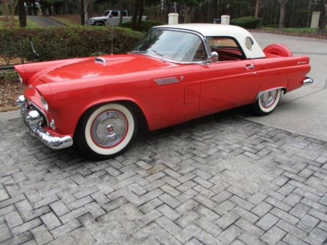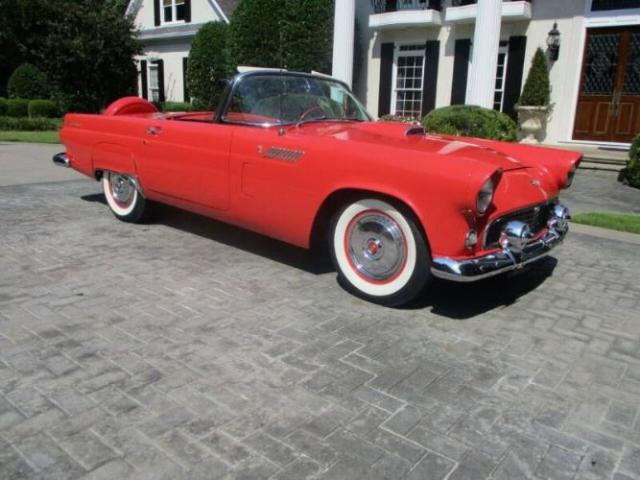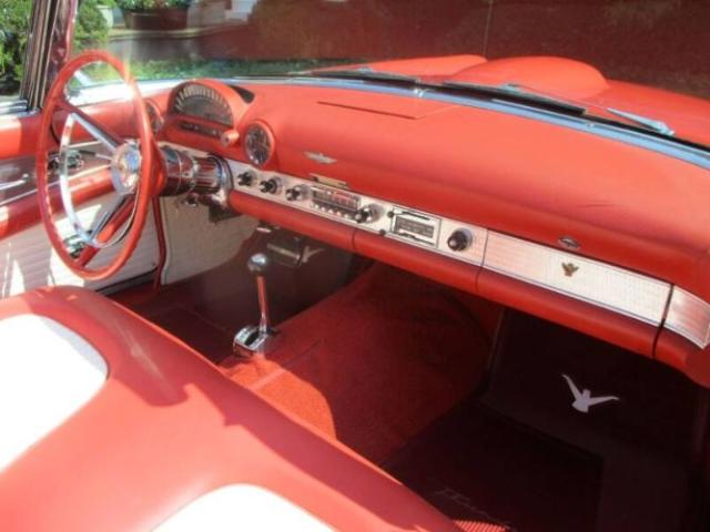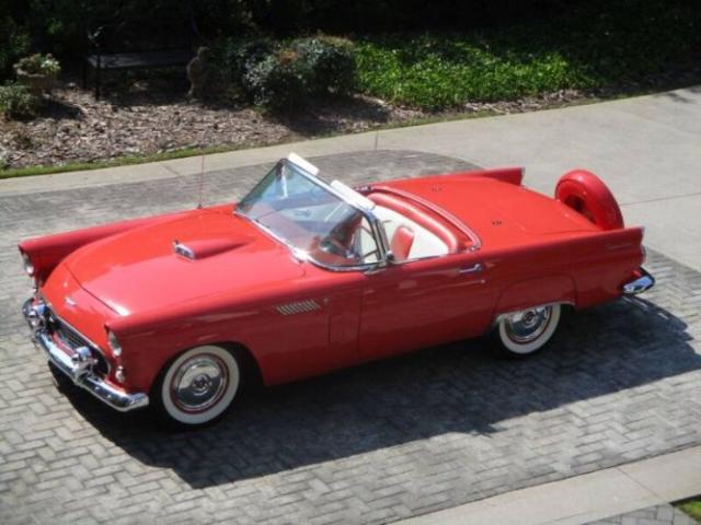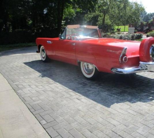 1956 Thunderbird Roadster When GIs who fought in the European Theater of World War II returned home, they brought with them fond memories of the British two-seaters that were a common sight over there. Some even managed to buy some and have them shipped home. It was clear to Detroit that there just might be a market for an American-made version of the famed two-seater open car. The two most famous of these were the MG-TC (and the later TD) and the incredibly handsome Jaguar XK-120. Kaiser introduced the famed Kaiser-Darrin in the early 50s and Chevrolet would follow next with the legendary Corvette. Ford was not blind to Chevrolets new car but chose to develop a car along a different path. It was decided their car would be made of metal instead of fiberglass; that it would be powered by a V-8 engine unlike the Corvettes Blue Flame Six; and that it would feature roll-down windows and an optional hardtop, unlike the Corvettes snap-on curtains. They further decided that it would, as much as possible, utilize the same tooling and parts interchangeability with the big Fords of that era. This Magnificent Example is finished in Beautiful Fiesta Red with Beautiful Red + White Interior & Colonial White Hardtop. This Classic underwent a comprehensive frame off restoration including Exterior, Interior, Brightwork, Top, and Mechanics. It comes with a comprehensive complement of amenities including: Fordmatic Automatic Transmission Floor-mounted Locking Button Shift Selector Low and Drive Range Master Guide Power Steering Full instrumentation Factory Tachometer Telescopic Lifeguard Steering Wheel Fully Adjustable Directional Signals Magicaire Heating and Defrost System Signal Seeking Town and Country Radio? Electric Clock Cigar Lighter (Unused) Lifeguard Seat Belts? Tinted Windows Lifeguard Padded Sun Visors Backup Lamps Wing Windows Chrome Engine Dress-Up Kit Rear Fender Shields Rear Continental Kit Rear Fender Skirts Wide Whitewall Tires Ford Scripted Wheel Covers Auto