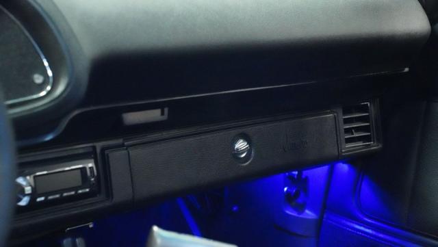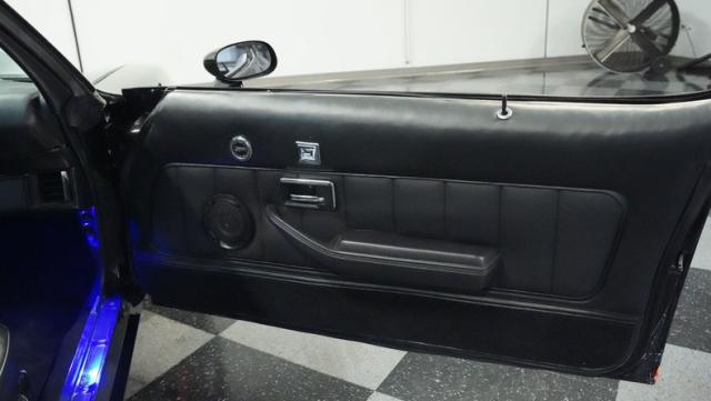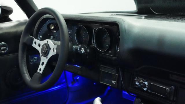 The black interior delivers pure performance focus with ProCar bucket seats that keep you planted through every curve. A Grant GT steering wheel puts control at your fingertips, while the floor shifter connects you to the action. The modern audio system features AM/FM with Bluetooth, USB input, and Kenwood speakers powered by an amp tucked into the glovebox. Custom kick panels complete the updated cockpit.