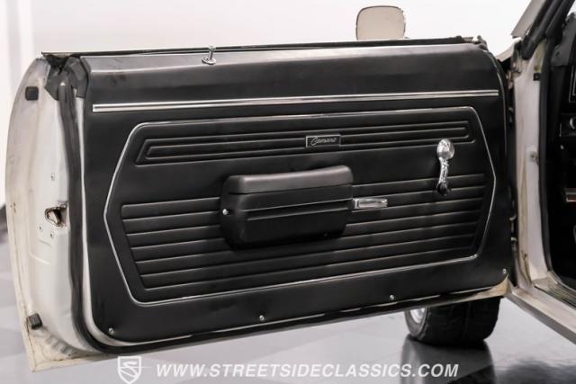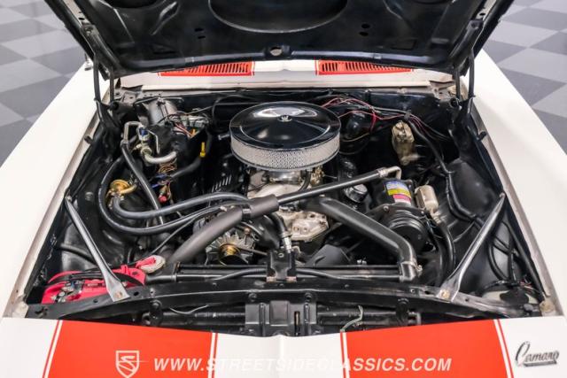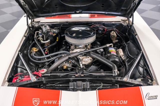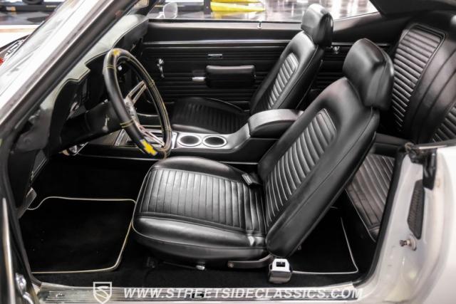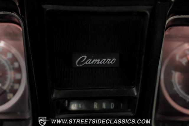 Inside, the black vinyl interior is both stylish and functional. The restored bucket seats provide ample support, perfect for both spirited drives and casual cruises. The dash is clean and uncluttered, with additional Equus volts, water temperature and oil pressure gauges mounted above the custom center console that features a comfortable armrest and convenient cup holders. A horseshoe shifter ensures precise gear changes, and the custom floor mats add a touch of class to the cabin. Though this Camaro stays true to its roots, the subtle enhancements make it a more enjoyable ride without compromising its classic appeal.