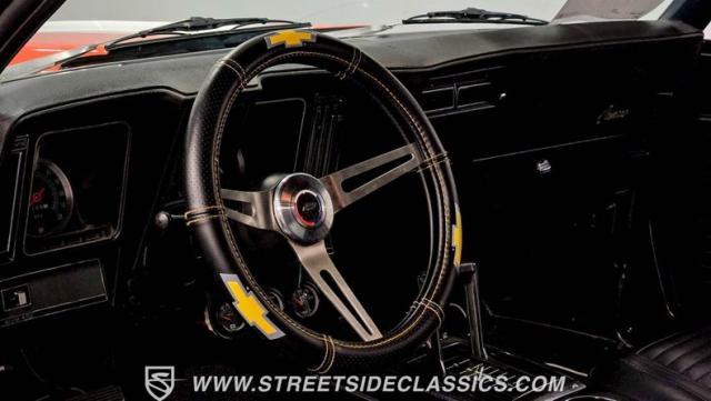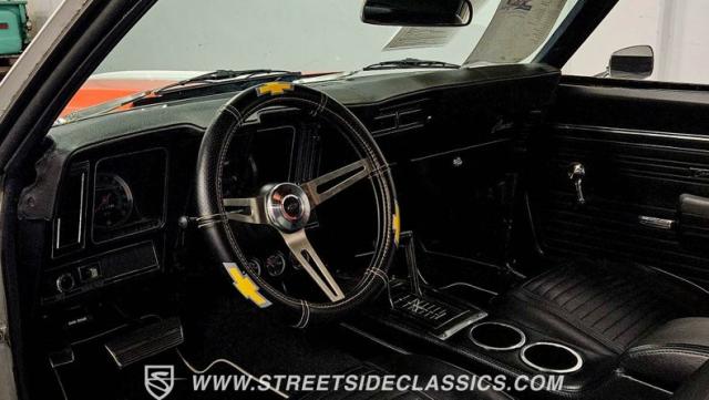 This 1969 Chevrolet Camaro SS Tribute captures the essence of classic American muscle with a touch of modern performance. With its powerful 383 V8 engine, stylish black interior, and striking White and Hugger Orange striped exterior, this Camaro is ready to hit the road and turn some heads. Call today!