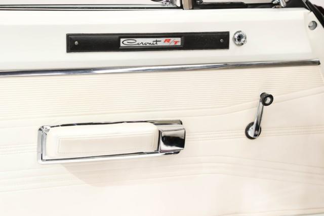 INTERIOR: The Pearl White looks amazing! The seats were recovered both front and back. The headliner, dash pad, and carpet was replaced. The door panels were also replaced plus the upper portion of the door is nicely painted white and has the correct Coronet R/T badging. The driver\'s door also has the optional remote mirror. The center console with automatic shifter, and steering wheel appear to be good originals. A Sunpro triple gauge monitors the vitals and the factory gauges also have a tachometer included. The thumbwheel a/m radio has a really cool built in 8 track player. All the interior lights are working.