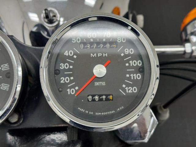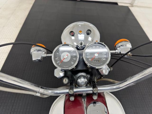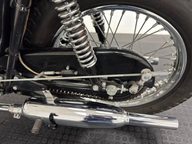 Presenting cleanly is the 490cc parallel twin, rated at 40 horsepower and fueled via dual Amal 1-barrel carburetors. A 4-speed manual transmission transfers power via a chain drive. Brakes are onboard as front disc and rear drum and suspension consists of a telescopic fork in front and swing arm with dual shocks in the back.