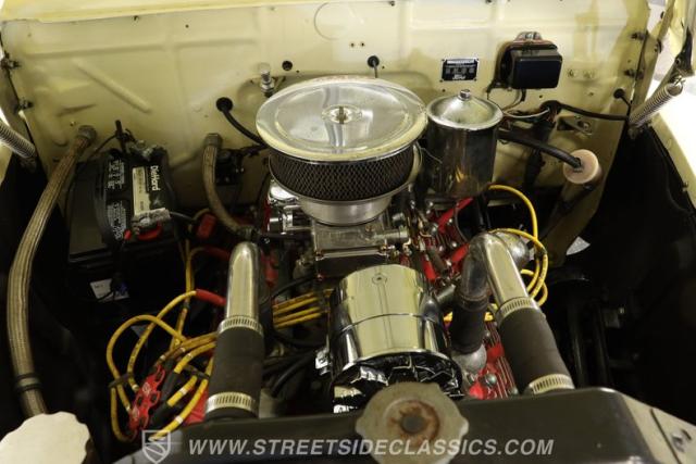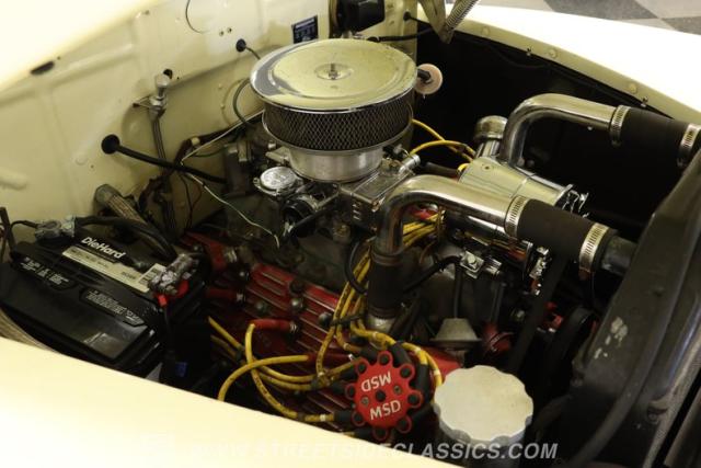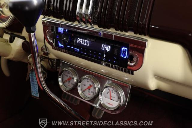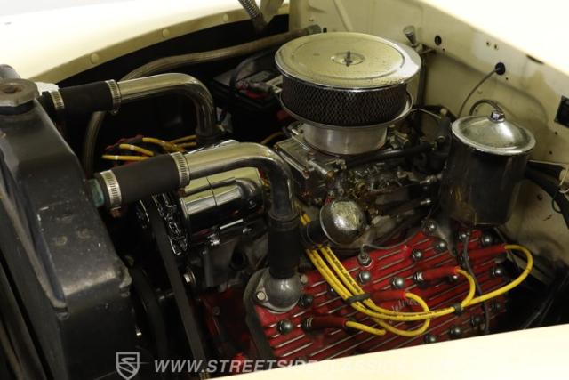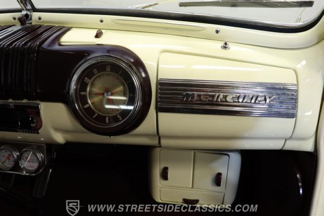Lift this Mercury\'s sculpted hood and you\'ll see an engine bay that\'s well-maintained, with a 239-cubic-inch flathead V8 at its center that\'s been outfitted with a pair of Edelbrock cylinder heads and a Holley 4-barrel carburetor to increase its abilities without seriously detracting from the compartment\'s largely authentic appearance. This flathead actually represented quite an advancement when it was released, in that it featured more torque than previous iterations of the V8, and it\'s trailed by an integrated bell housing that drastically reduced drivetrain vibrations over earlier models. An electric fan has been added to keep engine temperatures down, along with an MSD ignition to maximize spark.