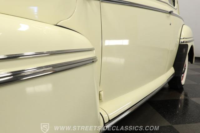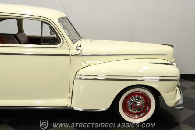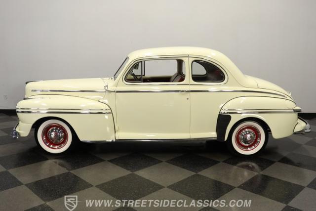 Such a sharp specimen of post-war luxury! This 1946 Mercury Coupe is one of those rare classics from decades long past that retains its convincing original form but also features some pivotal modifications that enhance its drivability, as well as the enjoyment of its next lucky owner. It wears Maize Yellow paint that mirrors a Mercury color option when it first debuted, and it still retains a shine that\'s accented nicely by a collection of chrome bumpers and trim whose pristine condition belies their age. Take a lap around this good-looking ride and you\'ll likely be impressed at how clean its body lines still are, and how its doors, hood, and trunk shut with a reassuring thud. The weatherstripping was likely replaced not all that long ago and still protects the door jambs, drip rails, and interior from the elements.