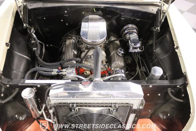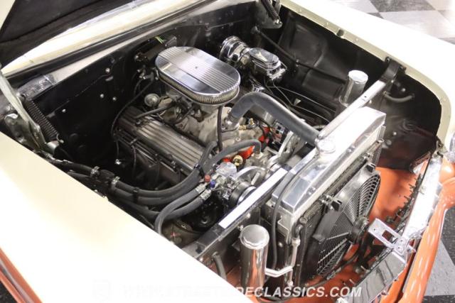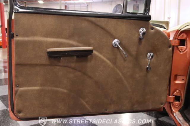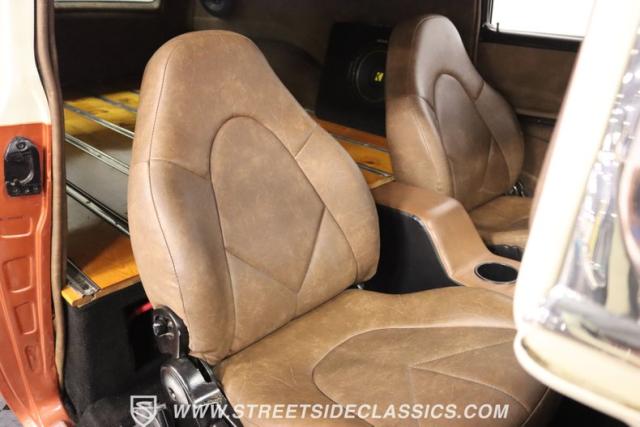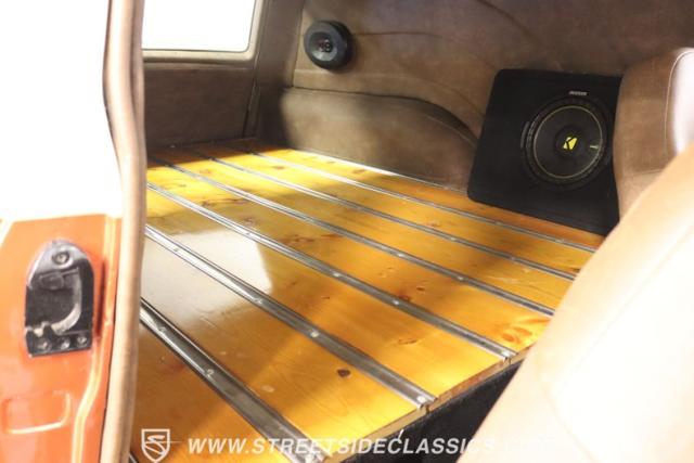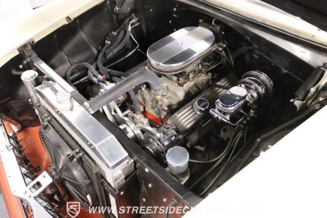 With its striking Copper exterior paired with a touch of Cadillac Cream, this ride is sure to turn heads. But it\'s not just about looks. Under the hood lies a powerful 350 V8 engine, ready to roar to life at your command. The interior boasts a custom leather setting with bucket seats, a B&M floor shifter, and a modern sound system to keep the tunes flowing. And with features like air conditioning, power brakes, and power steering, every drive promises to be a comfortable one.