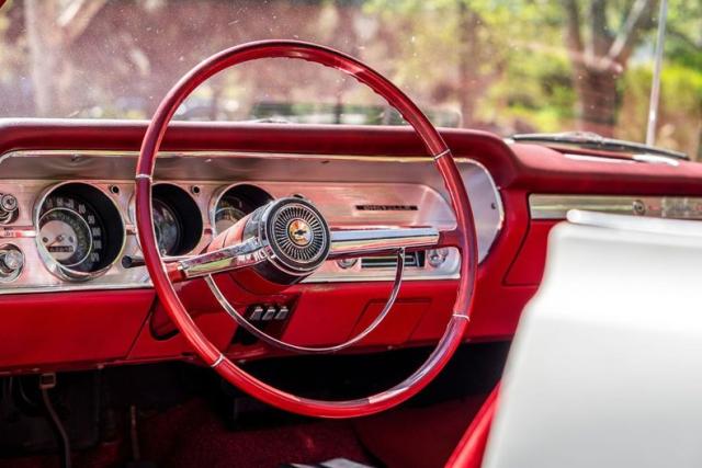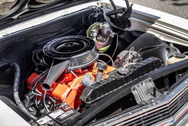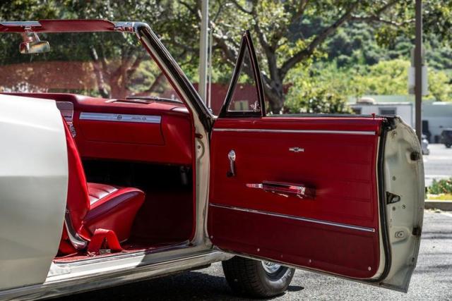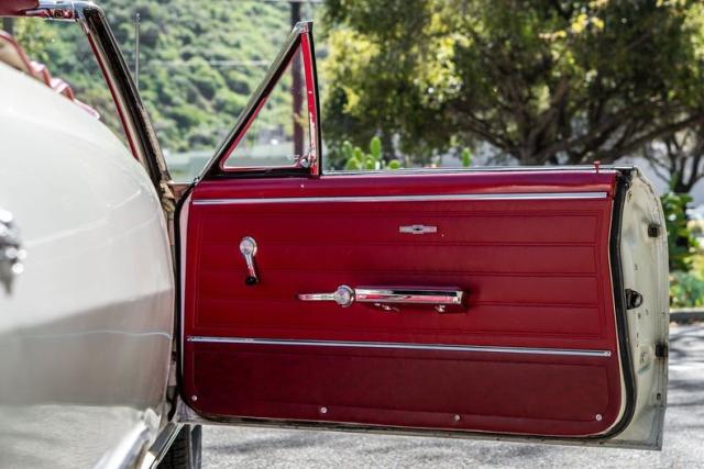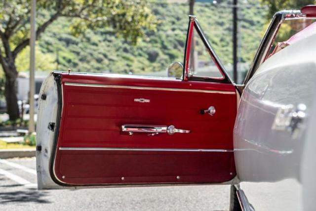 It runs great, never painted emerie white with red deluxe SS interior. It has the original 327/250 HP (L30-\"EE code\") date coded 07/09 which still uses the original canister oil filter. PG trans and 12 bolt. 2.73 gears (GB code dated 07/02). A rebuilt 2 barrel replaced the 4 barrel for efficiency. Cold starts are easy. The car runs great. The engine compartment was detailed to it\'s original appearance. Parts originally coated with zinc phosphate were re coated with zinc. No steps skipped during the refreshing of this car. Even the original bolts with head stamps were cleaned and painted. A lot of detailing of the original parts was done. The car comes with the original intake, carb, distributor, and a new white top The convertible frame was removed powder coated. New original seat covers and new original door panels installed. The seat frames were powder coated and new foam and burlap installed. New carpet with new sound deadening. The original dash pad has re wrap in matching vinyl. A new dash bezel was installed with a new ignition switch, headlight switch and brand new NOS clock. All lights are in working order including dash lights, under dash courtesy and center console as well as glove box light It has a new fuel pump, distributor, mater cylinder, brake booster, brake lines, wheel cylinders, new tires, and shocks. The original fuel tank was cleaned out and all rubber lines replaced throughout. The radiator was cleaned and pressure tested. new hoses were added. I am confident this car could be driven cross country.\"