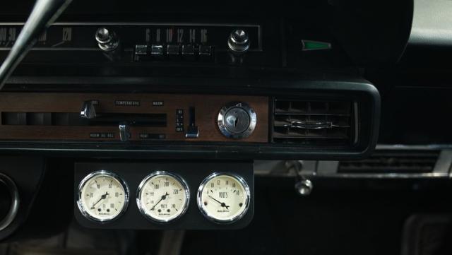 Black vinyl adorns the spacious interior, featuring bench seats for that classic look. New additions include a dash pad, carpeting, and windshield. The column-mounted shifter controls the 3-speed automatic transmission. An AM radio provides entertainment, while a 3-gauge cluster under the dash offers additional engine monitoring. A new wiring harness improves reliability and safety.