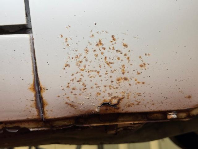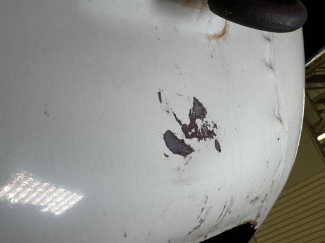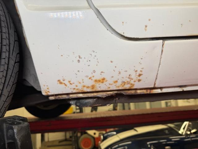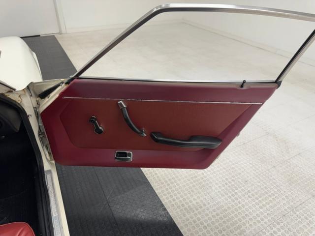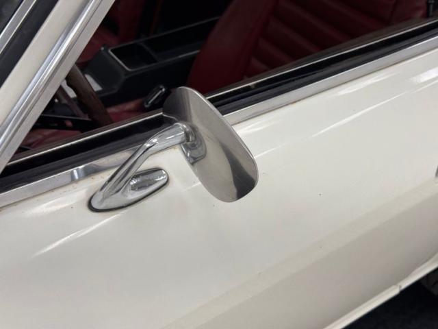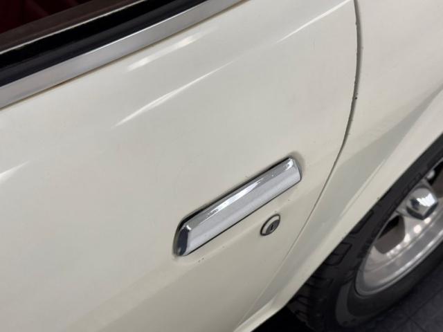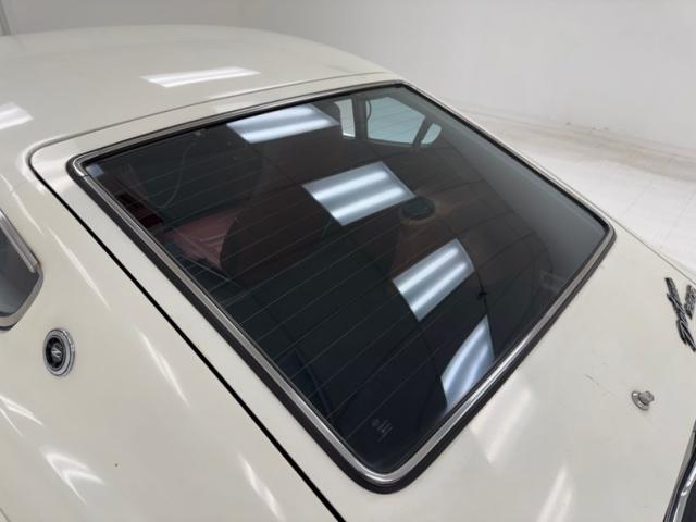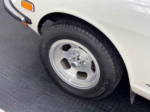 With gaps that remain consistent, we can see the consignor stated original white as the driven snow paint. It is a fair paint job and shines nicely but does have a few areas of overspray in the door jambs leading us to believe there was at minimum some spot in work performed in the past. The quintessential pony car with Japanese influence, its long hood, inset head lighting, black contrasting egg crate grille and long sloping hatchback the side view sells this car. I can see why it was so wildly popular in its heyday. Take this design, throw in plenty of reliability and some sporty performance and we have a winner winner chicken dinner! Black accenting, chrome bumpers with non stockCalifornia bumper bars, as well as the aforementioned black grille and the black rear roll pan give it a sporty yet sophisticated look. Some surface and beginnings of invasive rust on nearly all of the lowers on this car, some dents and paint peeling off are pretty typical with a car of this age. Aluminum slotted wheels are wrapped 185/70R14 rubber all around. These tires are older, although look good, and the consignor states that the left front has a slow leak.