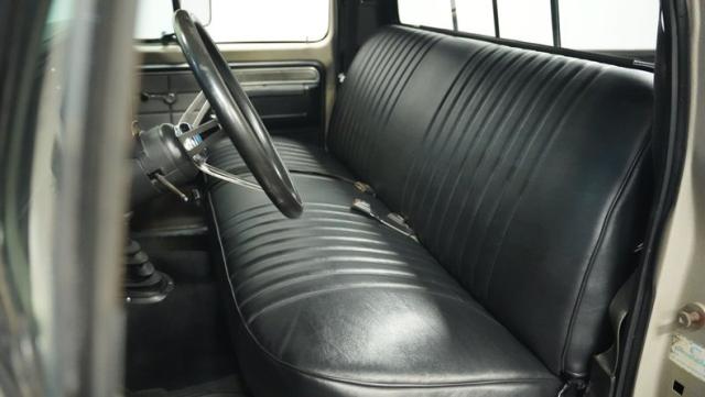 The interior remains mostly stock in appearance and is in great condition with a black bench seat, original style two-tone door panels, air conditioning, sliding rear window, custom steering wheel with Ford logo center cap and a stylish Highliner headliner with an AM/FM/CD/AUX/Bluetooth stereo and four built-in Sony speakers.