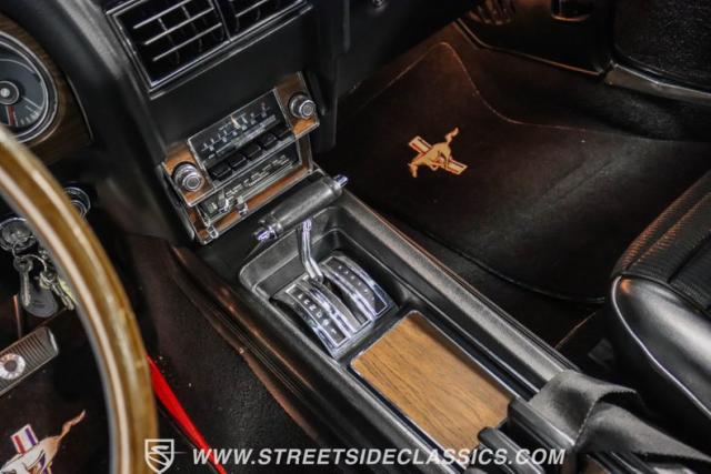 The non-numbers matching 428 Cobra Jet V8 dominates the engine bay. This powerhouse, identified by its 8Z-prefix VIN code, boasts 428 Cobra Jet heads (C80E-N casting) and breathes through a Holley 4-barrel carburetor. A C6 automatic transmission channels power to a 9-inch rear end with a 3.00 Traction-Lok differential. Power steering and power front disc brakes enhance drivability and stopping power. The dual exhaust system with glasspack-style mufflers produces an authoritative rumble befitting the Cobra Jet\'s reputation.