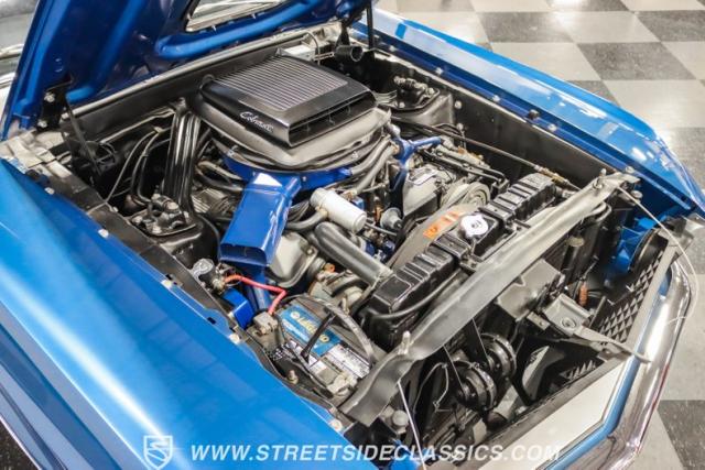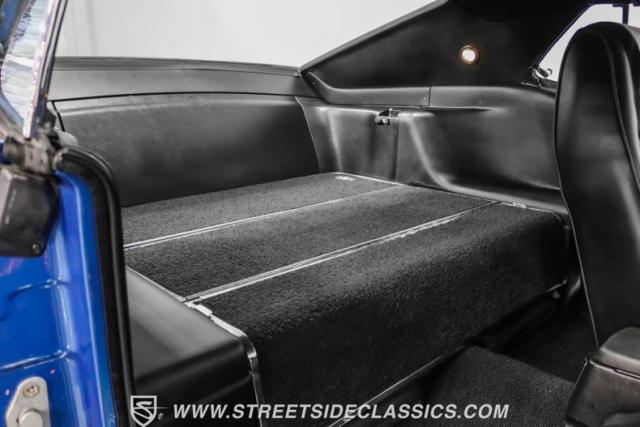 Black high-back vinyl bucket seats anchor the interior, offering both support and style. The center console houses a floor-mounted shifter for the C6 automatic transmission. A rim-blow steering wheel, mounted on a tilt-away column, gives the driver precise control. Unique factory options include intermittent wipers and a sport deck rear seat, blending practicality with performance-oriented design. The dash features a factory tachometer and factory air conditioning (will need servicing to blow cold again).