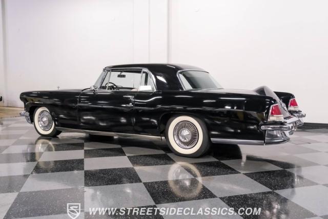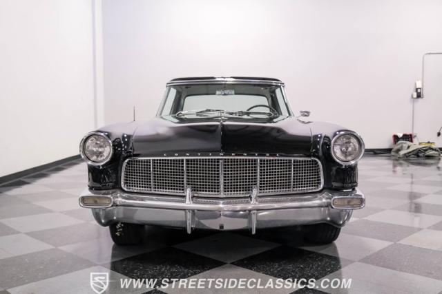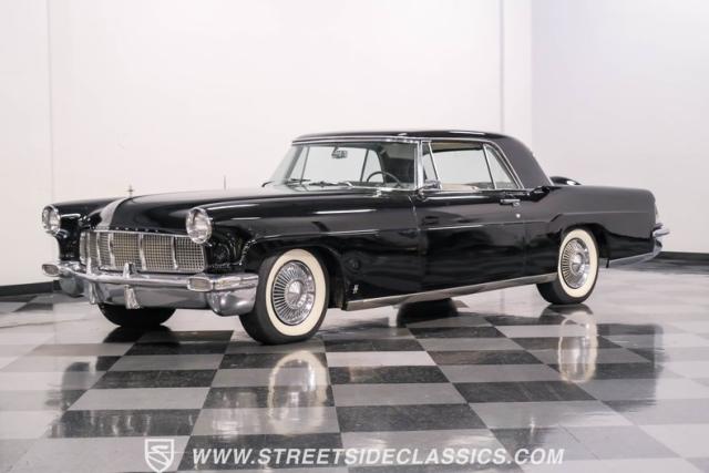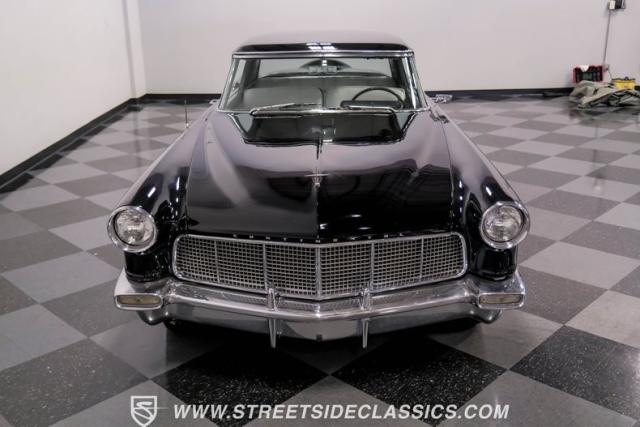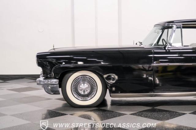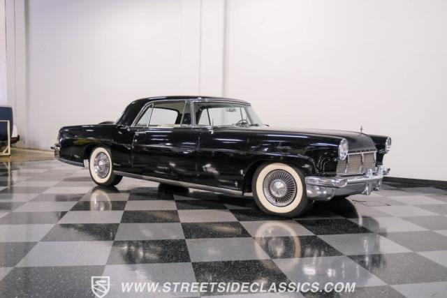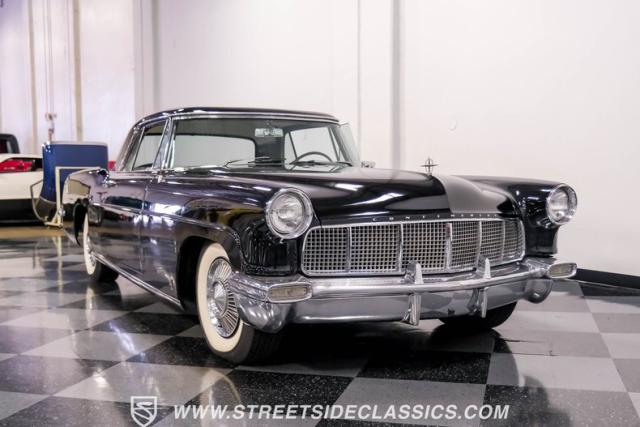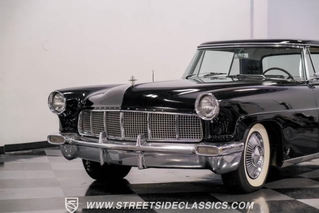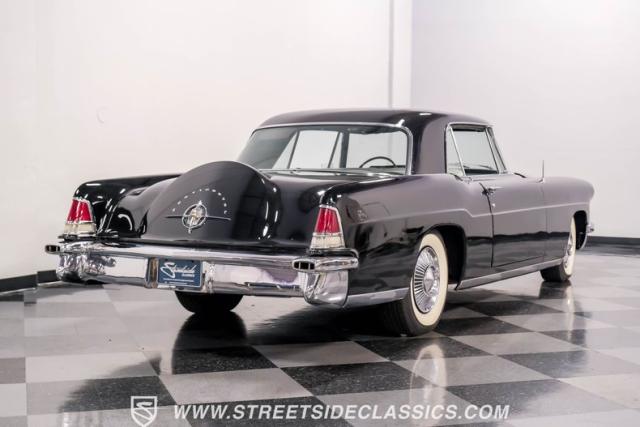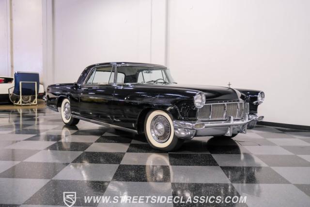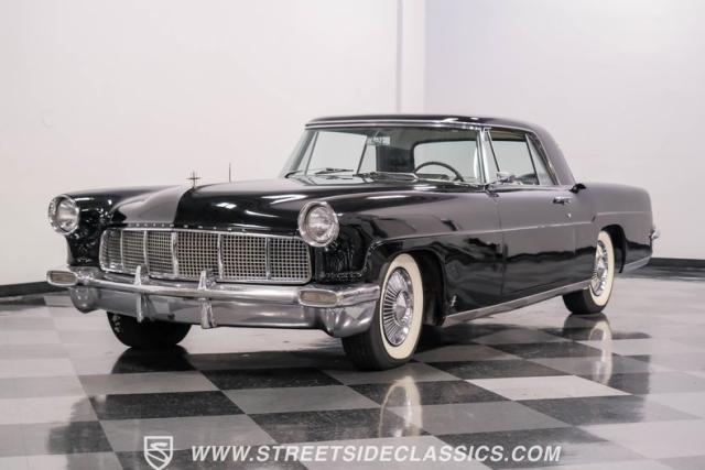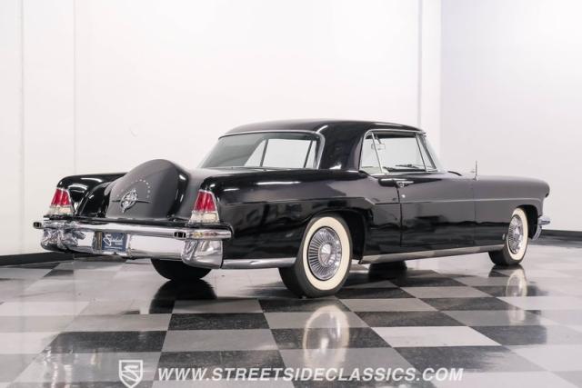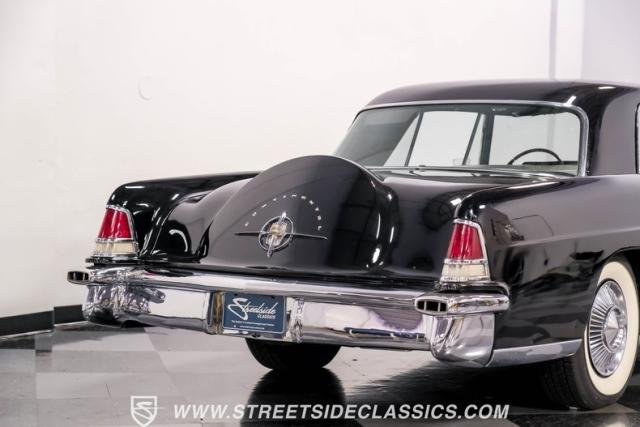 Elegance personified, this 1956 Lincoln Continental Mark II in glossy black paint is a sight to behold. With its sleek lines, Continental kit, and chrome trim and bumpers that gleam like a mirror, this classic coupe is a true embodiment of luxury from a bygone era. Rolling on a set of 15\" wheels wrapped in 235/75R15 Coker Classic whitewall tires, this Continental Mark II commands respect wherever it goes.