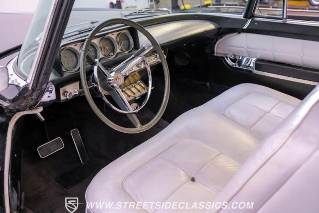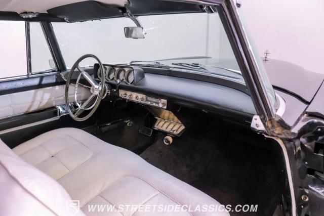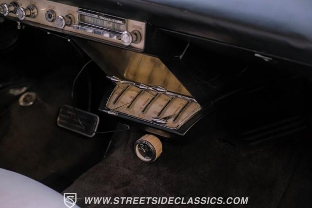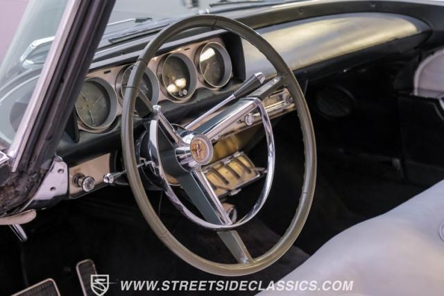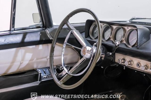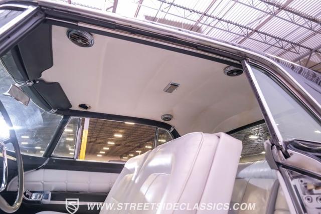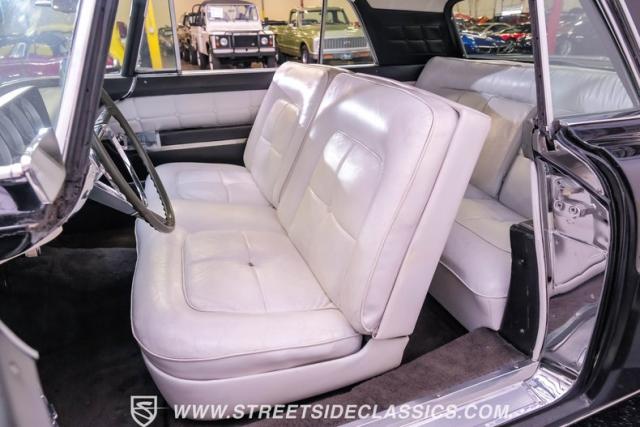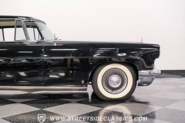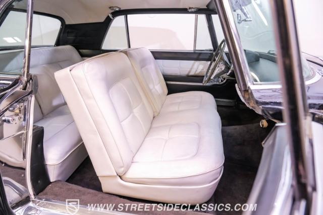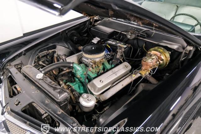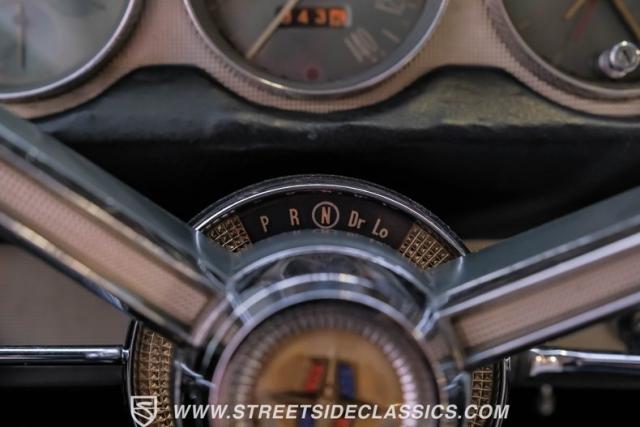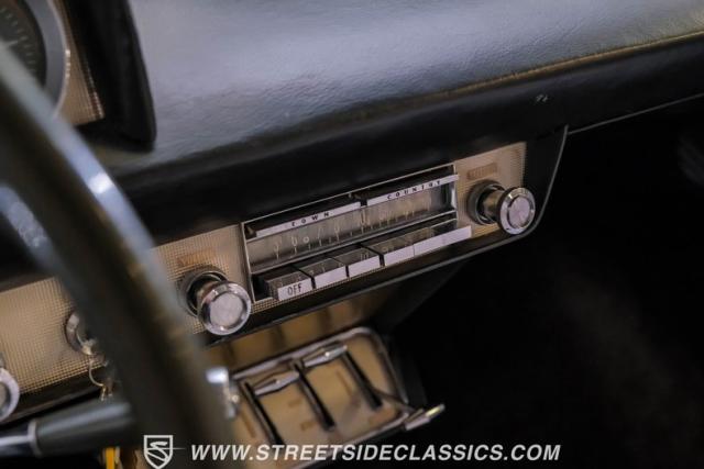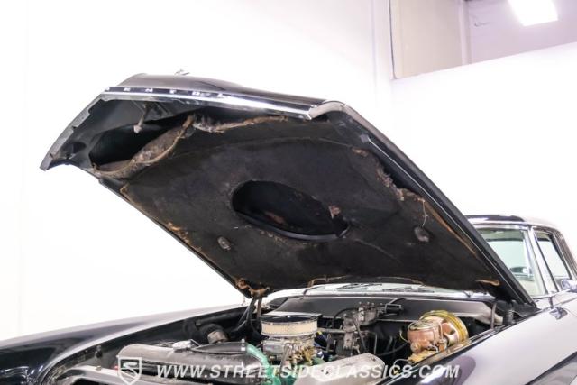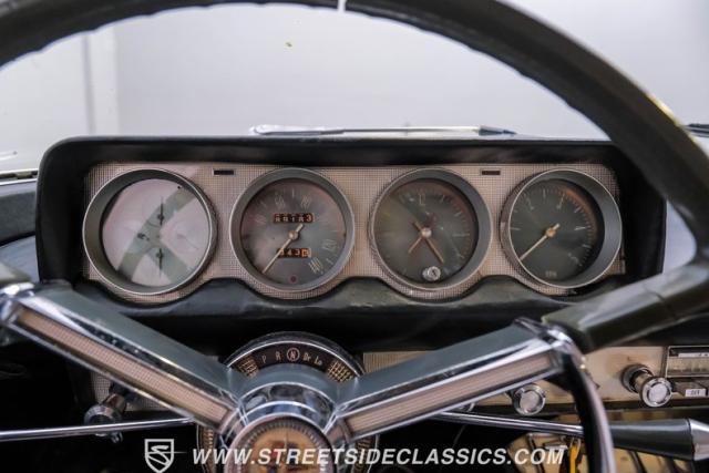 Slide into the white and gray leather bench seat, and you\'ll find yourself transported to a world of refinement. The interior, believed to be largely original, showcases the craftsmanship of a different time. The Town and Country radio adds a touch of nostalgia, while the column-mounted shifter keeps the cabin clean and uncluttered. The white complements the exterior black, creating a striking contrast that\'s both sophisticated and inviting.