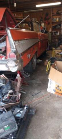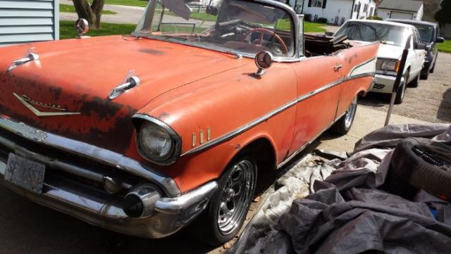 1957 Chevy Bel-air convertible 283 V/8 power packed heads 3 speed manual transmision column shifter all original matching numbers car front to rear needs complete and total restoration stainles steel body molding is in great shape engine was is seized up soaked engine up for two years still would not turn took top of engine apart rear left cylinder hand mond of rust stopping it from turning have all parts short block still in car short block still in car along with trans and drive shaft needs complete floor pans and braces front to rear door bottoms rusted left and right rear seat missing front seat frame rusty have what may be 4 original 14 inch rims that came off car and maybe one hub cap. Please Note The Following **Vehicle Location is at our clients home and Not In Cadillac, Michigan. **We do have a showroom with about 25 cars that is by appointment only **Please Call First and talk to one of our reps at 231-468-2809 EXT 1 ** FREE Consignment Visit Our Site Today Easy To List Your Vehicle and Get it Sold in Record Time.