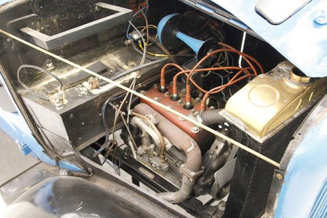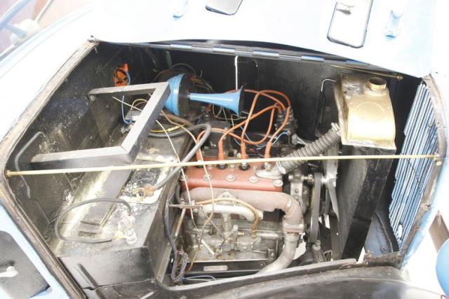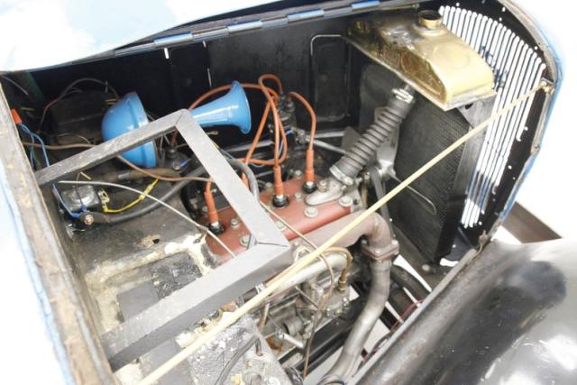 A gone through with new rings and a valve job 747cc 4 popper is under the long bonnet and is attached to a rebuilt 3-speed manual transmission. Overall the bay presents nicely with a touch of patina, but does show a spider web of added wiring. Out back a 4.40 geared rear axle drives the tires.