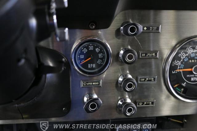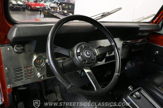 One look under the hood, and you can tell there was plenty invested in keeping the engine bay looking and performing its best. AMC\'s 258 cubic-inch (4.2-liter) motor has been a long-standing reliable motor for Jeeps. This one has been hot-rodded with the best features for added power. It includes a Holley four-barrel carburetor, an Offenhauser intake, and headers. It makes for quite a healthy powerhouse, but you won\'t be thinking about this one for the quarter-mile. The extra muscle works with features like the low first gear on the four-speed to give you some serious torque right from the start. Add this to the tall ground clearance, two-speed 4x4 transfer case, air-locking hubs, and Nitto Mud Grappler tires for a capable machine. Power steering and front disc brakes are welcomed features on dirt and asphalt.