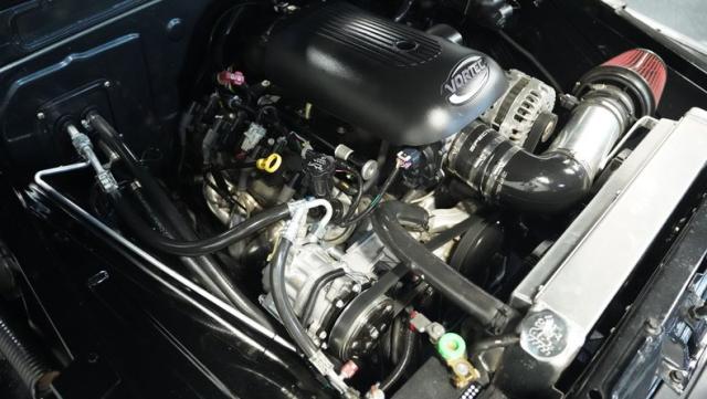 The 5.3L V8 Vortec engine, transplanted from a more recent vehicle, powers this Apache. The engine compartment showcases a clean installation with added headers for improved exhaust flow. A custom-fabricated air intake system feeds the V8, while an aluminum radiator with dual electric fans manages engine temperatures effectively. Power transfers through a 4L60 4-speed automatic transmission to a 9-bolt Borg Warner posi-traction rear end with 3.27 gears. The upgraded suspension features coil springs and shocks at all four corners, with a rear sway bar for enhanced handling. Four-wheel power disc brakes provide reliable stopping power. A Flowmaster dual exhaust system completes the performance package, delivering a muscular sound.