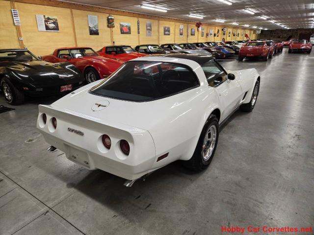 1981 White Corvette 4spd Black Interior T Top For more information visit: https://www.hobbycarcorvettes.net/corvette/1981-white-corvette-t-top/ CASH PRICE: $ 24000 TRANSMISSION: MANUAL ENGINE: L81/350 MILEAGE: 12,452 MILES ON THE DASH Details Numbers matching, L81/350 engine, 4 speed manual transmission, 12,452 miles on the dash (title is exempt for mileage), black leather interior, power steering, power brakes, A/C, adjustable sport mirrors, AM/FM/CD radio, alloy wheels, power windows, tilt & telescopic steering column, Edelbrock aluminum intake, Edelbrock carburetor, original air cleaner assembly, original valve covers, original ignition shielding, and much more. We changed the oil and filter and checked and lubed the chassis. We replaced the motor mount, right front brake caliper, upper and lower control arm bushings, upper and lower ball joints, sway bar links, power steering hoses, thermostat and gasket, and much more. The previous owners replaced the trailing arms, adjustable strut rods, emergency brake cable, rebuilt the rear end, and much more recently. 1981 was the last year for a carburetor on the corvette. It was also the first year for a computer in a corvette. This was the last year for the Saint Louis Assembly Plant and the first year for the Bowling Green Plant. GM only produced 6,387 White corvettes out of 40,606 total production in 1981.