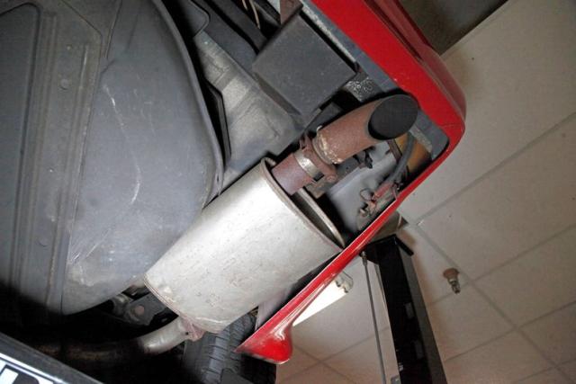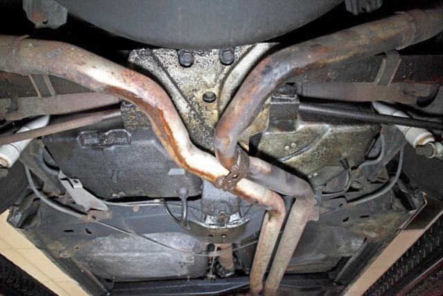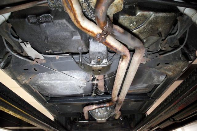 Very nicely preserved with some patina on the black paint of the undercoating, but all else is unremarkable and structurally sound. For the front suspension we note an independent SLA type which features coil springs, mounted shock absorbers, and spherical joint steering knock pivots. In back is an independent SLA forged aluminum upper and lower control arms and steering knuckle, transverse mono leaf springs, a steel stabilizer bar, and spindle offset. Power disc brakes are on all 4 corners and true dual exhaust with stock style mufflers is on, but is sans catalytic converters.