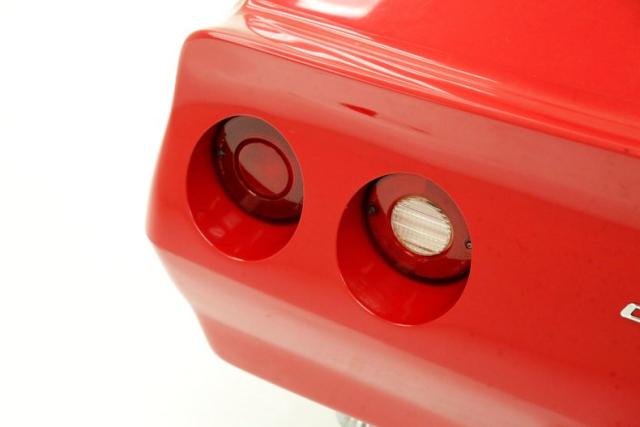 For 1981, after several years of progressively gaining weight, this year it went on a diet and has lost some weight. A thinner hood and outer doors, lower density roof panels, and making use of aluminum for the differential housing and crossmember help with this effort. Some front and back bumper \"caps\" are gone for this year, and this redesign decreased the overall drag coefficient. We can see the use of crossed flag badges, a black rocker that follows the coke bottle design on either side, and a mirrored T top with removable panels. The fiberglass is in overall good condition and we see some chips off of the paint near the gaps along with some spider cracking, scuffs, touch ups and severe road rash on the pointed nose. All glass, including the greenhouse rear window, which forms itself nearly to the rear spoiler has a fairly substantial storage area underneath remains in good condition. The Corvette cove in the front fender remains, round headlights survive another year under the flip open doors, and now shiny 15-inch slotted wheels are on all 4 corners. All bathed in a nice coating of red. Honey!!! I\'m ready to go!