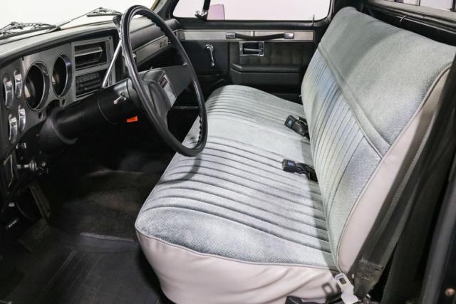 Under the hood is the legendary 350 cubic inch V8 breathing through a Rochester carburetor, the kind of small block that built GM\'s reputation for dependable torque and easy performance upgrades. It is paired with a 700R4 automatic transmission that delivers smooth shifts and highway-friendly cruising, making this classic pickup just as happy rolling down the interstate as it is rumbling through town.