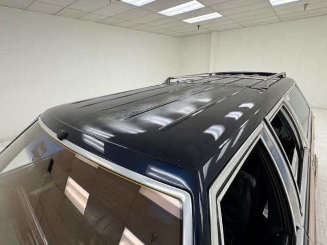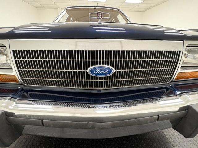 The dark blue of the exterior is matched with the dark blue interior beginning on the door panels of vinyl, plastic, brushed aluminum switchgear plates, and carpeted lowers. It\'s hard to imagine a family wagon without some simulated wood trim and it\'s here on each door contouring around door open handles. Blue leather bucket seats occupy the front with some patina creasing and wear on the driver\'s seat, evident use on the others, and some displaced leather on the passenger front seat. There is a third row of seating in the back, and when folded down creates a substantial open and flat space covered in nice blue carpet. Up front, it does not veer from the LTD sedan with a horizontal speedometer to 85 mph, column shifter, A/C panel, and updated AM/FM/CD radio and everything is in very nice condition. The plush blue carpet shows minimal wear, and the long, blue headliner is in great shape.