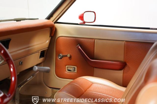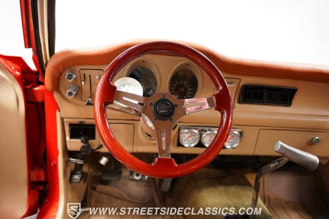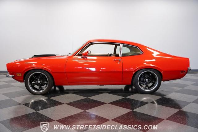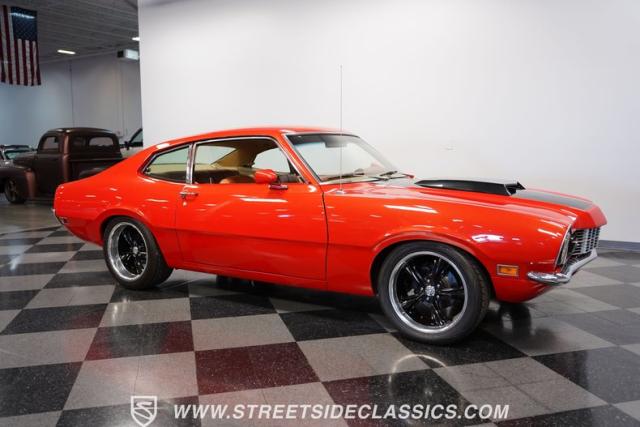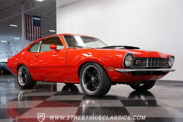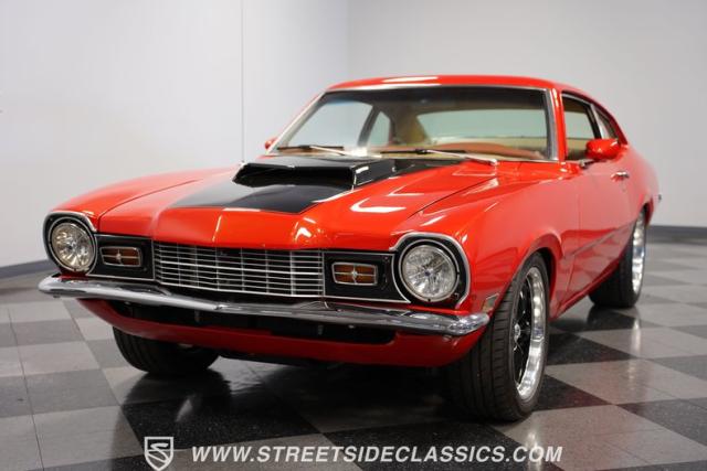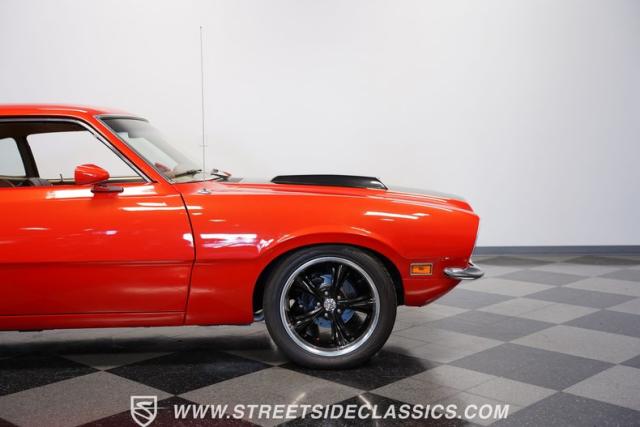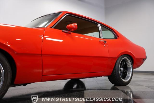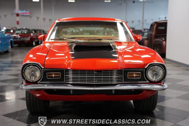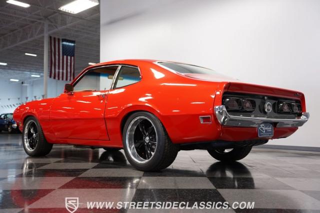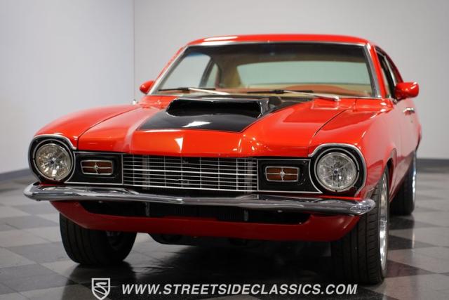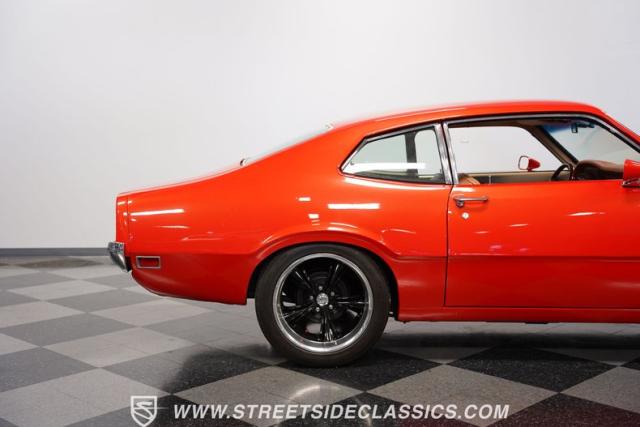 This 1977 Mercury Comet blends a touch of nostalgia with modern flair. Its metallic orange and black paint catches the light, while the 18-inch Boss wheels add a sporty edge. The hood scoop hints at performance, a fun nod to the classic GT model, and the slimmer bumpers from the Comet\'s earlier years give it a unique, streamlined look. This car has personality and a bit of history etched into its finish, ready for the next chapter in its story.