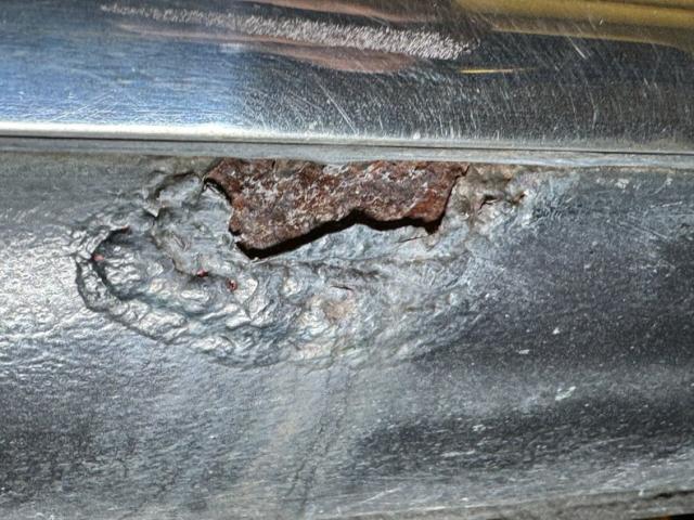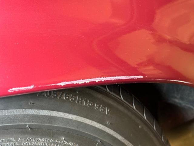 Two stage Garnet Red coats our can and we\'ll see, it\'s a fine color that lends itself to contrasting the soft top and interior palette. We\'ve said it before that the low, wide stance of the 560 not only looks surefooted and stable but translates to a ride that shares these descriptives. Dual headlights surrounded by a reflective bezel and accented by a winged marker lights flank a grille with soft corner and the requisite Mercedes star. On the bumper, chrome is accompanied by black structural pieces and bumperettes front and rear, connected visually by the side panel trim just below the waistline. Wheel opening in the back drape over the rear tires while the fronts are fully exposed and together with the laser straight shoulder line results in a strong and sleek profile, especially with the top down. The black canvas top is in good condition although there is some hazing to the three plastic windows. Other imperfections include tiny paint bubbles near the rocker panel, body trim that has come loose in several places, the beginnings of invasive rust at the rocker drain, various scratches, touched up paint chips, rust below the rocker panel and other parts under the bumper.