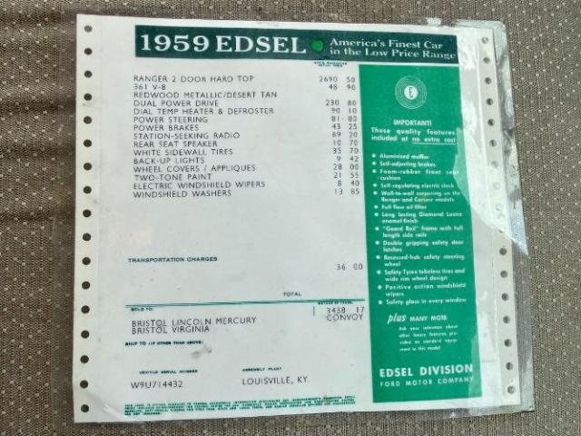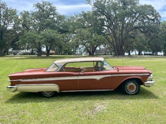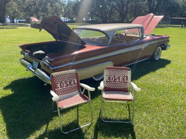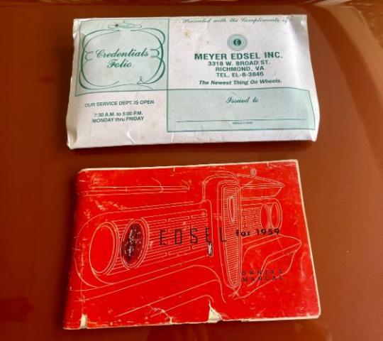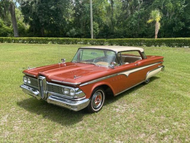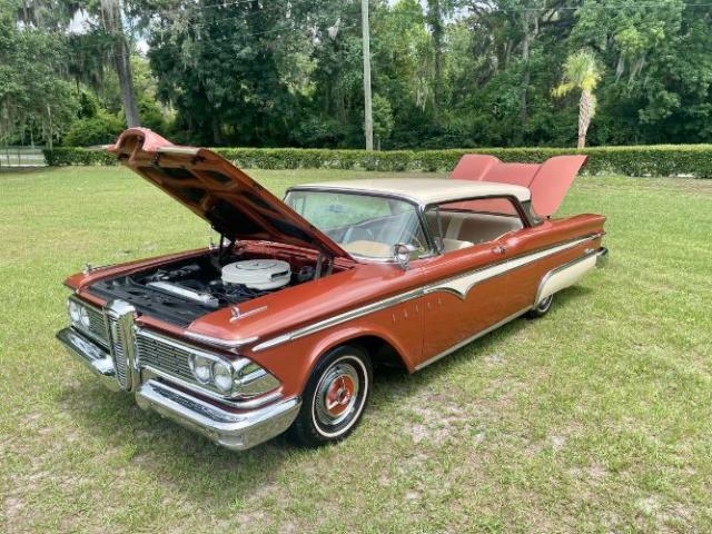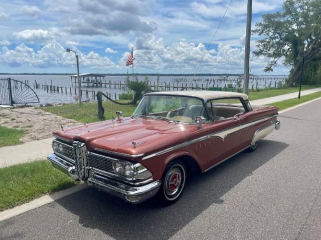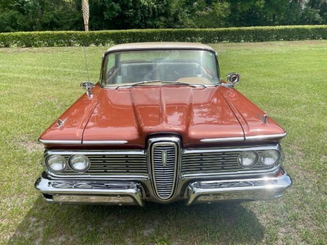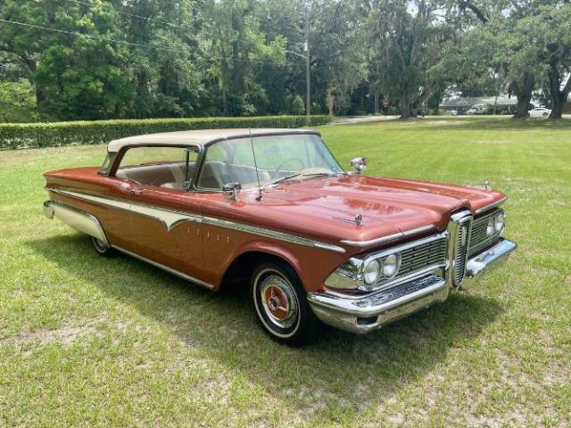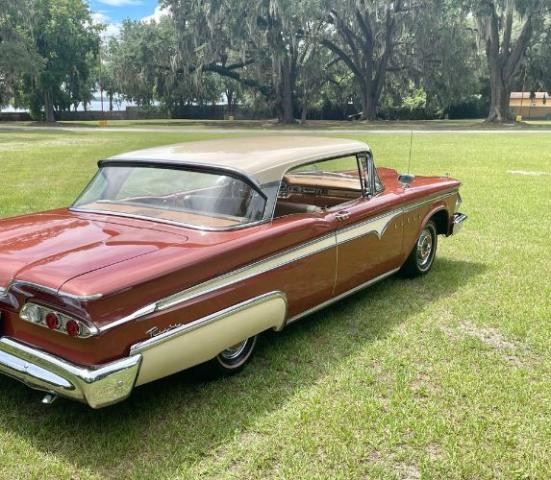 1959 Edsel Ranger 2 Door Hardtop was purchased new in Richmond, VA at Meyer Edsel. The car has always been garaged and cared for since. A bit later in the cars life, it was owned by a wonderful gentleman in the Edsel Club who enjoyed driving it to car shows where the car won many trophies/awards. We acquired the car from his son, who was keeping it in a storage unit the last couple of years, wasnt driving it as much as the car deserved, and therefore made the decision it was time to re-home it to a good Edsel home. This Edsel runs and drives well, makes great power, and is very reliable. The automatic transmission shifts smoothly at all speeds and the car tracks very straight down the road. She has been serviced well through the years. Some recent items include: newer brakes, a new radiator, carburetor, fuel pump, and a full service checkup. The original A/C will need some TLC to work again. The photos tell a great story. The original colors of Redwood Metallic and Desert Tan really stand out in a crowd! There are some minor flaws/touch up areas due to normal age and driving, but the finish looks very pretty overall. The interior/upholstery could be factory original and it\'s in amazing condition. The styling of the inside of the car is just exceptional. Beautiful original dash and steering wheel! All of the glass is in good condition, the windows are tight, and roll up and down easily. The doors shut exceptionally well with a nice THUD. Engine compartment and trunk are nice and tidy looking for your car show display. Underneath the car looks great also. Comes with the original owners manual and dealer folder, a copy of the original invoice, and a nice car cover and matching chairs. It has many trophies yet to win. Please Note The Following **Vehicle Location is at our clients home and Not In Cadillac, Michigan. **We do have a showroom with about 25 cars. **Please Call First and talk to one of our reps at 231-468-2809 EXT 1