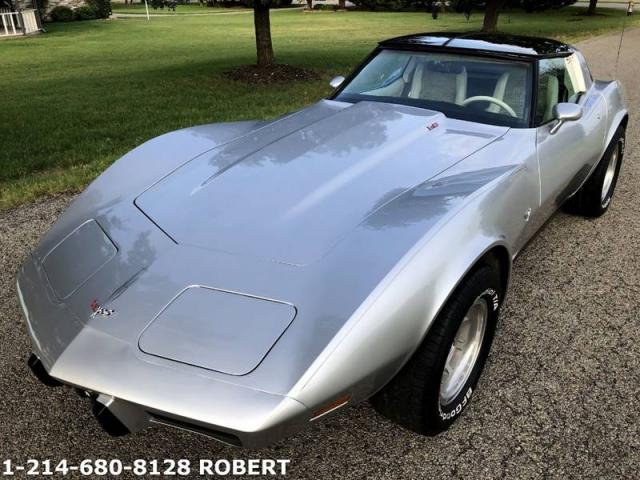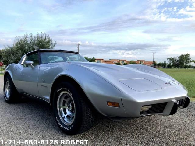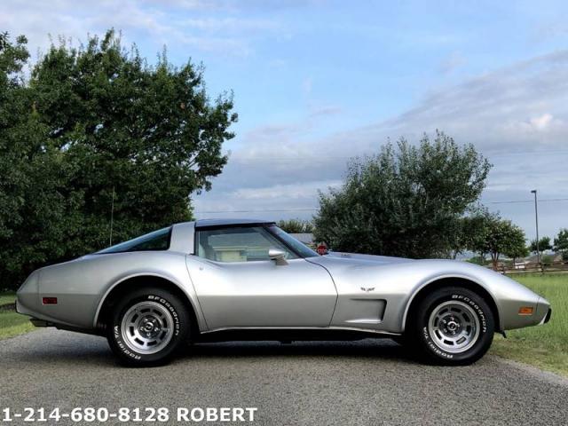 1979 Corvette, 59K miles, Glass Tops, Mostly all original and meticulously maintained. WATCH VIDEO BELOW by copy/pasting link in to your internet browser or youtube https://youtu.be/w2a09yuB7-E #s match L48, 350 with 3 speed automatic with 59K miles. Optioned with Glass Mirrored T-Tops and polished wheels. Super clean frame, body, engine compartment and interior. Newer, great silver paint job with all original cloth, Oyster Interior. All gauges work and head lights up/down as they should. PW, PS, PB, Tilt-Tele, Cruise, new stereo head unit, great sounding newer exhaust with custom Gibson SS tips. Super clean and gorgeous vette. Dont miss out on one this original, nice and clean. Call or text any time 214-680-8128 Robert