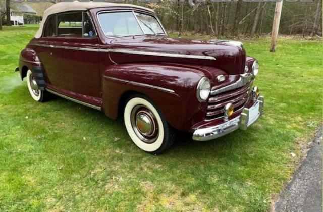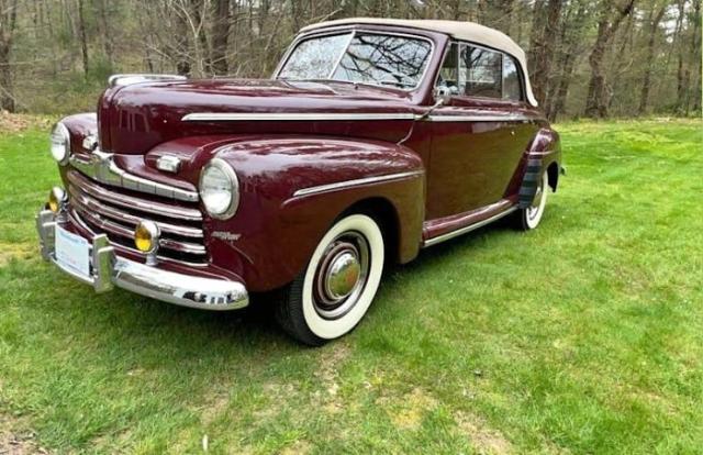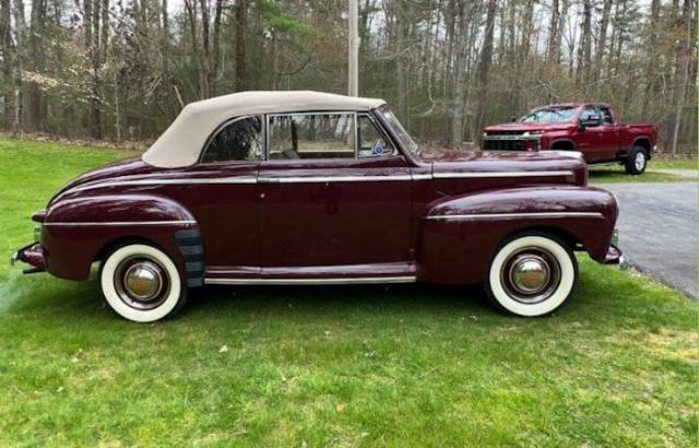 1946 Ford Super Deluxe Convertible in pristine condition. This car is finished in Dynamic Maroon which is complemented by the a pristine Tan Vinyl and Cloth interior with a beautiful Tan Canvas convertible top. Overall this car is stunning, special and in outstanding condition. This 1946 Ford Super Deluxe Convertible had a professional frame of restoration completed 2014 and no expense was spared. We have documentation supporting approximately $85,000 spent on the cars refurbishing. The result is a beautifully preserved example of an early American Automobile. She has her original 239cid, 100hp 2bbl Flathead V8 Engine, coupled to her original Three Speed Manual Transmission with 2 speed Columbia rear end; she runs and drives beautifully. She also has Vintage Turn signals, Fog Lights, and Seat Belts. The convertible top is perfect and operates as designed. This car was judged by The Early Ford V8 Club of America - Concourse Division and scored a 994 out of 1,000; that is impressive and proves how near perfect this car is. As a matter of interest most all the issues causing point deductions have been addressed.T Driven 1,430 miles Manual transmission Fuel type: Gasoline Excellent condition Please Note The Following **Vehicle Location is at our clients home and Not In Cadillac, Michigan. **We do have a showroom with about 25 cars that is by appointment only **Please Call First and talk to one of our reps at 231-468-2809 EXT 1 ** FREE Consignment Visit Our Site Today Easy To List Your Vehicle and Get it Sold in Record Time.