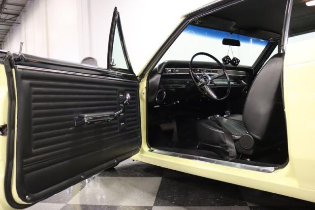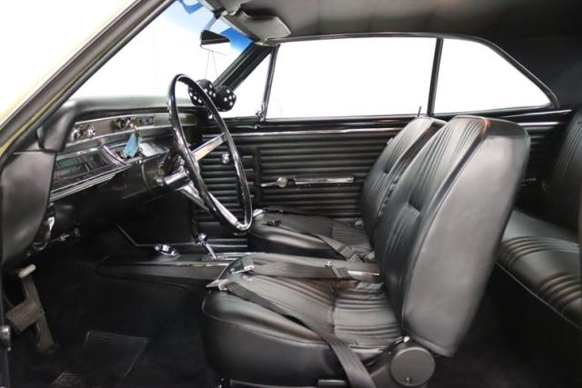 For the same reason why we like the black accenting against the yellow exterior is why we love the factory-correct full black interior. And not only does this have the ideal color combo, but also you can tell they made some solid investments in keeping it a comfortable machine. There\'s a smooth dash, nice door panels, and newer carpeting. There are even nice details, like newer brightwork on the dash and a working dome light. The heater controls even show this was a factory A/C car (it will need components and servicing to return the function.) And this was made to be a driver\'s car with upgraded ProCar front bucket seats with a center console in-between. So you can just imagine the grip of the steering wheel and the feeling of the breeze rolling through this hardtop.