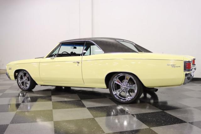 Great colors, great upgrades (including overdrive), and a great deal of power for the larger big block V8 make this 1967 Chevrolet Chevelle Malibu SS tribute a powerful hardtop with a great amount of appeal.