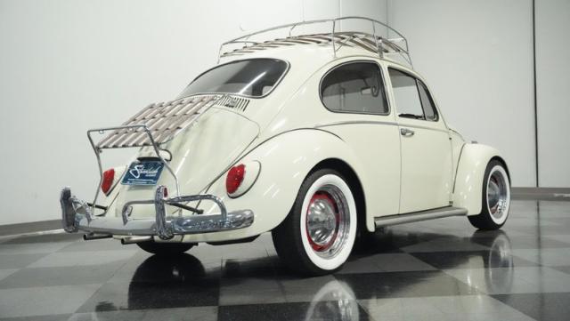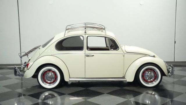 Built in an era when The Beatles topped the charts, this 1966 Volkswagen Beetle rocks a clean White Sand finish that amplifies its iconic profile. A perfectly lowered stance gives it that extra shot of street style, while the sleek luggage rack crowns the signature curved roofline. Period-correct dog dish hubcaps spin above Falcon 195/60R15 whitewalls, blending vintage aesthetics with modern road grip. Custom-tinted glass and polished chrome trim add the finishing touches to this classic German machine.