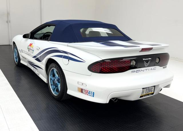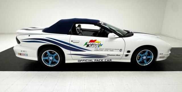 For consignment, a 1999 Pontiac Firebird Trans Am 30th Anniversary convertible Pace Car replica with a title verified 19,139 actual miles. This is one of just 535 anniversary convertibles produced and one of 1,600 in total. This one replicates the handful of cars designated to actually pace the Daytona 500 in 1999.