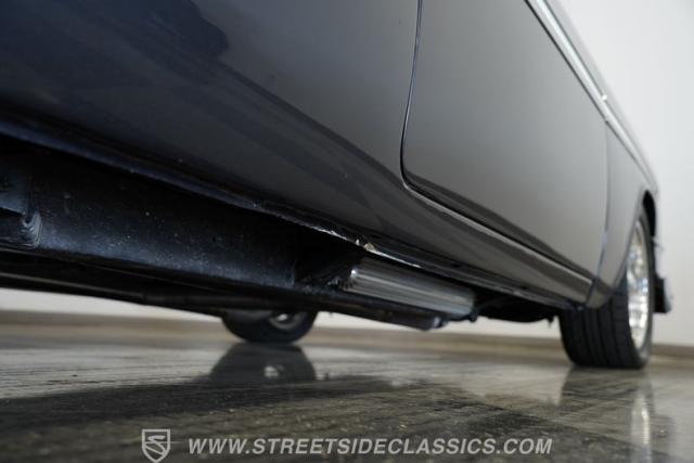 There\'s plenty to like beneath the hood, where a 350-cubic-inch V8 stands by, ready for action and outfitted with a four-barrel Quadrajet carburetor. Mated to a smooth shifting 3-speed automatic transmission, the engine is in fine form, sending a deep note out of the dual exhaust that leads to a pair of Borla mufflers. A Moroso aluminum radiator sits up front, equipped with a pair of electric fans to keep operating temperatures in check, and the way the aftermarket air conditioning condenser was so cleanly integrated with the radiator shows a reassuring attention to detail. Power brakes that include discs up front bring prompt stops, while the power steering on this Chevy makes it easy to maneuver.