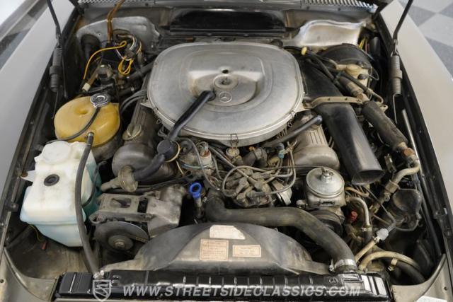 This 4.5-liter V8 engine works with the 3-speed automatic transmission to move this car with authority. This fuel injection system provides quick starting and good throttle response. This suspension setup uses coil springs, shocks, and a sway bar in the front with coils and shocks in the rear for controlled handling. Four-wheel power disc brakes bring this car to a stop with minimal effort, and power steering allows for easy maneuvering at all speeds. This engineering shows why Mercedes-Benz gained such a strong following among those who appreciate well-built automobiles.