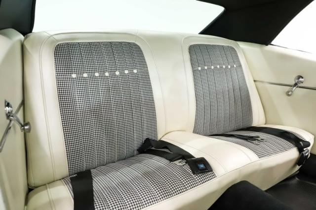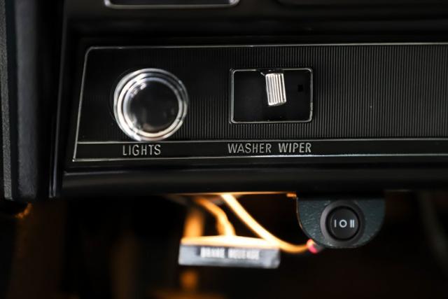 UNDERSIDE: It\'s been rebuilt and upgraded for performance. Up front, it has QA1 tubular control arms and coilover adjustable gas shocks. In back, it has new springs with lowering blocks, QA1 adjustable gas shocks, and tubular Cal Trac traction bars. The fuel system has been replaced and upgraded to support the fuel injected motor. It also has a great sounding stainless steel exhaust with an X-pipe and polished MagnaFlow mufflers. The brake system has been upgraded with disc brakes at all four wheels. Looking up at the motor, it has an extra capacity oil pan and a high torque starter. It\'s also upgraded with a 4L60E overdrive automatic transmission. A rebuilt driveshaft leads back to a heavy duty M9 rear end with 3.50 posi gears. The floors are solid metal.