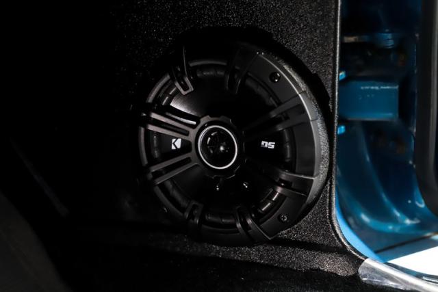 TRUNK COMPARTMENT: It is tidy, under the trunk lid and the jamb are painted a nice blue and inside is solid metal with a spatter finish paint. There\'s also an amplifier and subwoofer as part of the stereo system.