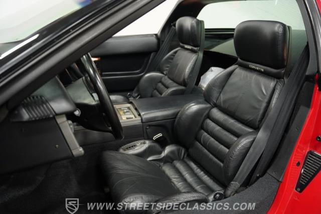 The factory-correct black interior looks great against the red exterior. But you can tell from its quality condition that it didn\'t spend too much time with optional bronze transparent targa roof out to showcase this very premium full color combo. The ZR-1 is meant to be a true driver\'s car, that\'s why the leather sports seats power adjust to your ideal position; the gauges are a terrific mix of analog and digital; and the shifter effortlessly falls into your right hand. More than just the ultimate sports car, this is also a terrific luxury coddler. That\'s because this classic comes loaded with features like automatic A/C climate control, power windows, power locks, cruise control, power steering, and a factory AM/FM/Cassette/CD stereo. Because this is a modern classic, there are also great modern safety features like a driver airbag and anti-lock brakes.
