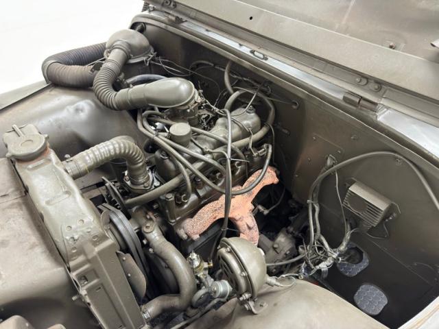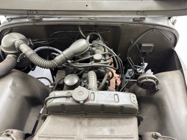 Don\'t look for chrome in here, it\'s mostly drab under the hood where we find the 134ci inline 4 cylinder, fueled by a 1-barrel carburetor and rated at 60 horsepower. The Borg Warner T90 3-speed manual begins the transfer of power which is split between the Dana 25 up front and the Dana 44 out back, both with short ratio 5.38 gears. Drum brakes are found at all four wheels.